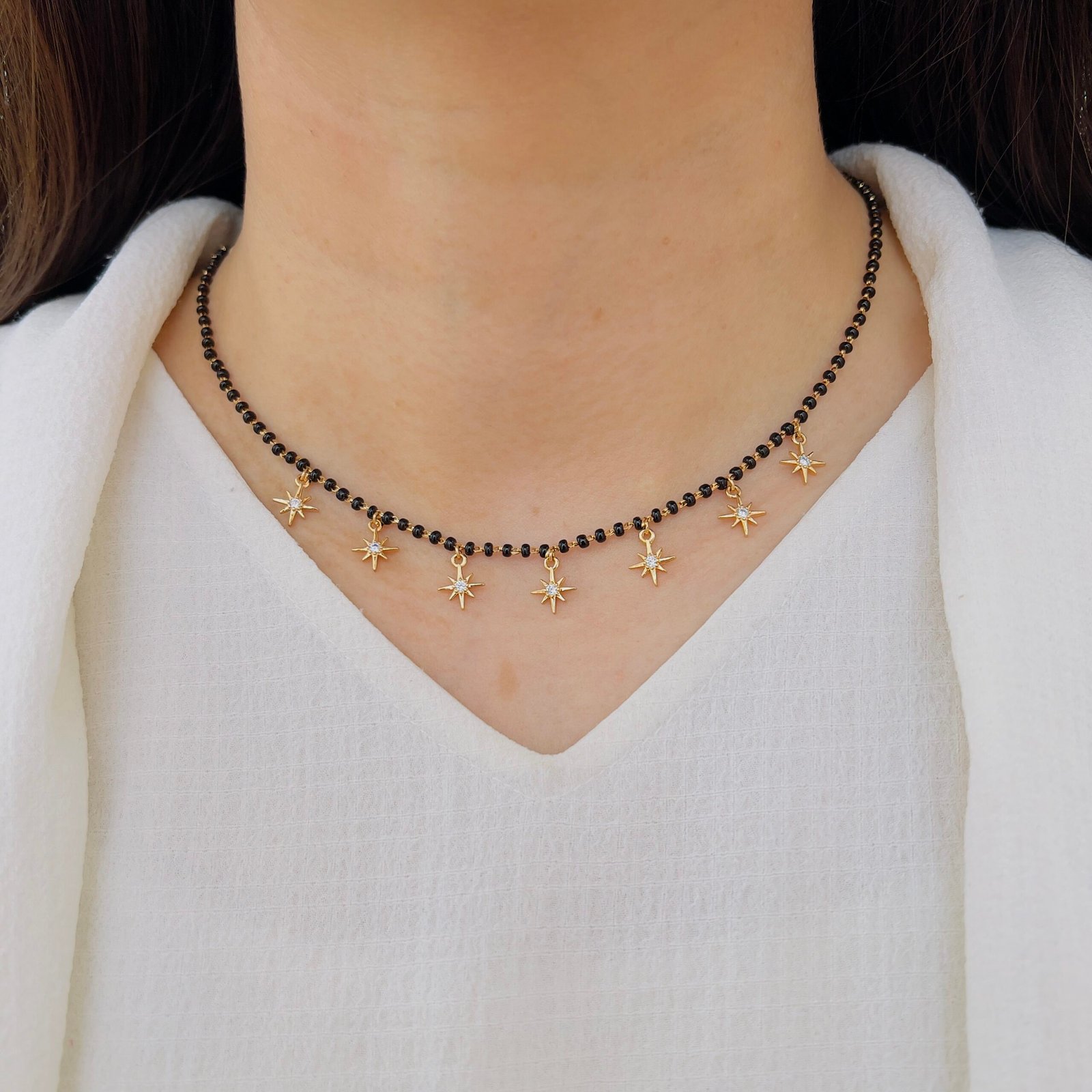 ⭐ Star Charm Black Beads Mangalsutra – Modern Elegance