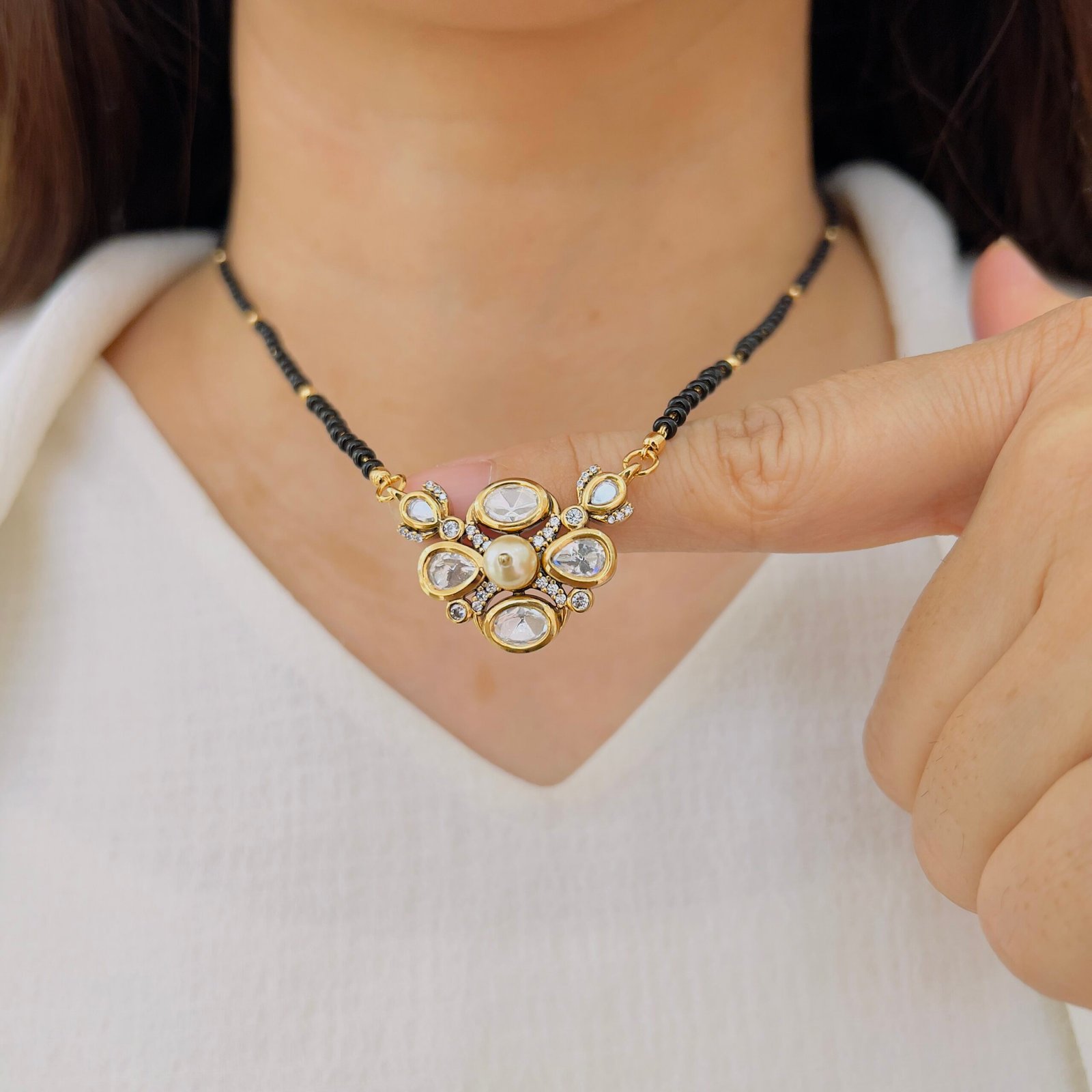 This simple and elegant mangalsutra with black beads is crafted for daily comfort and long-lasting beauty, A must-have traditional piece that pairs effortlessly with both ethnic and modern outfits.