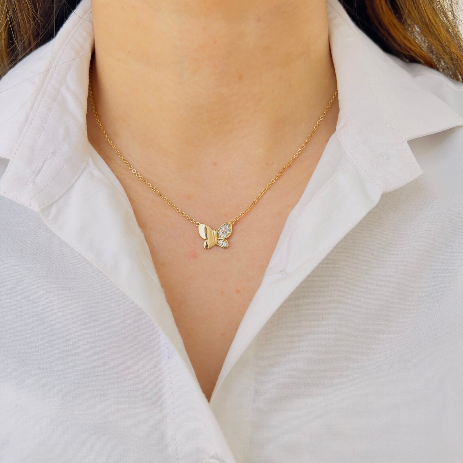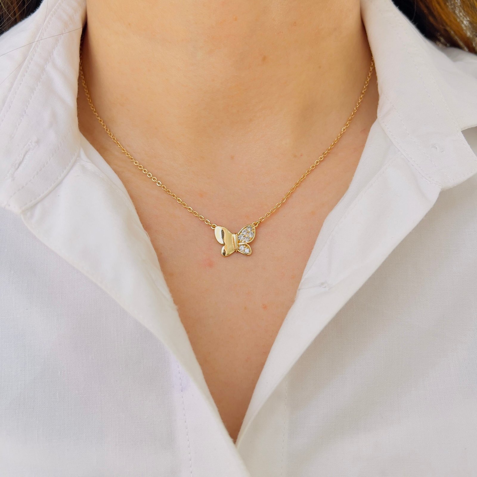 A graceful butterfly charm chain designed to bring a touch of elegance to your everyday style, Crafted with premium 18K gold plating, it offers a long-lasting shine, anti-tarnish finish, and lightweight comfort.