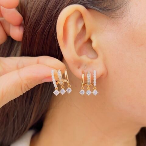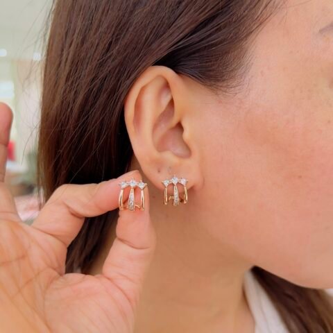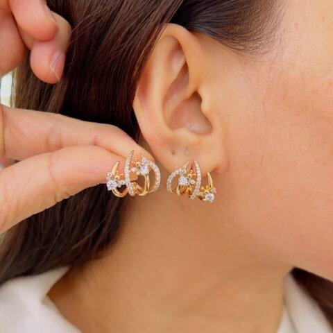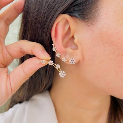 These 18K gold plated ear cuffs feature delicate stone detailing in a sleek, modern design, Lightweight and comfortable for daily wear, they offer effortless style without the need for extra piercings.