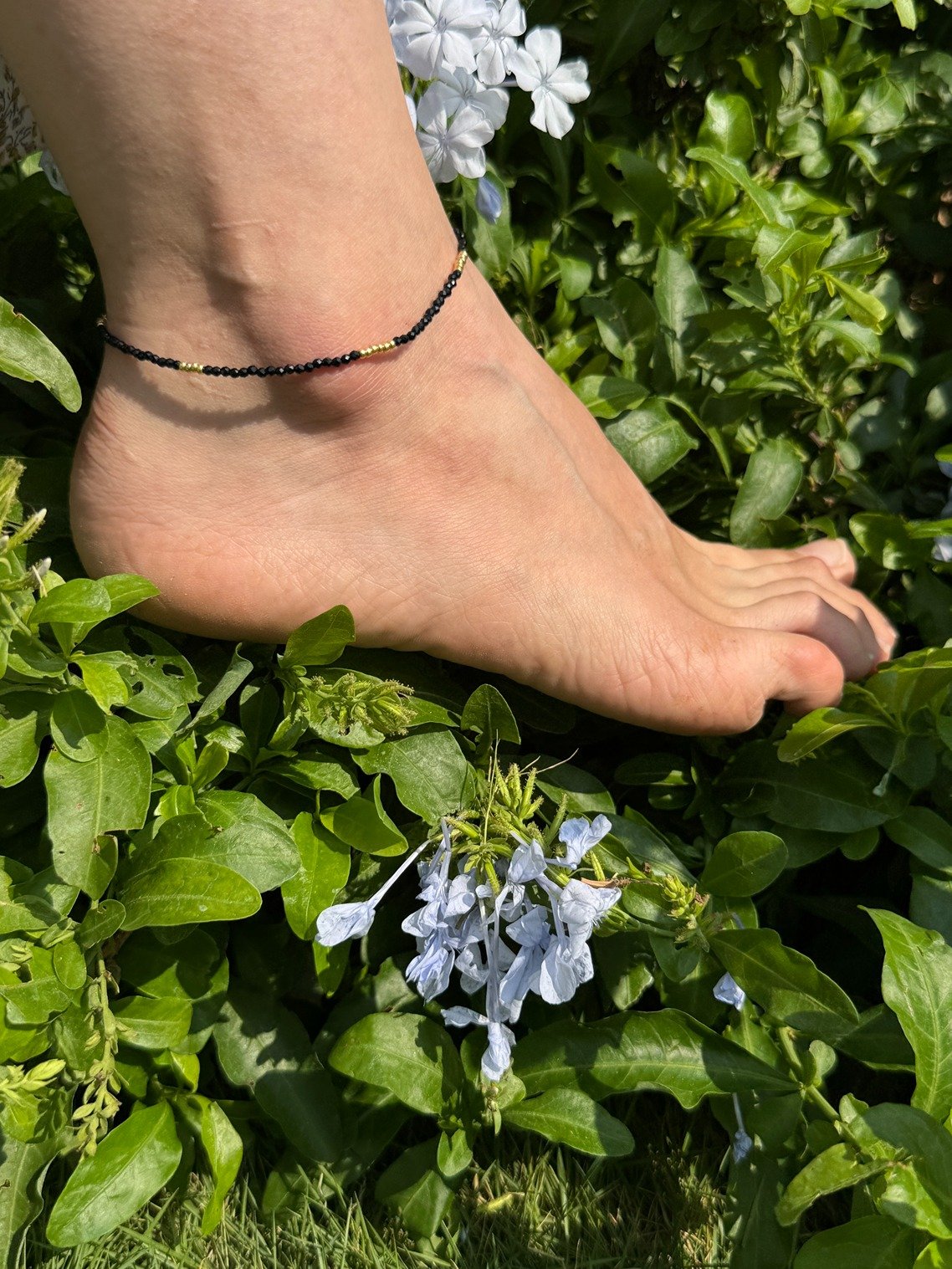 This elegant anklet is the perfect finishing touch to your outfit. Handcrafted with stunning detail, its radiant design shines with every movement, offering a luxurious and graceful addition to your style.