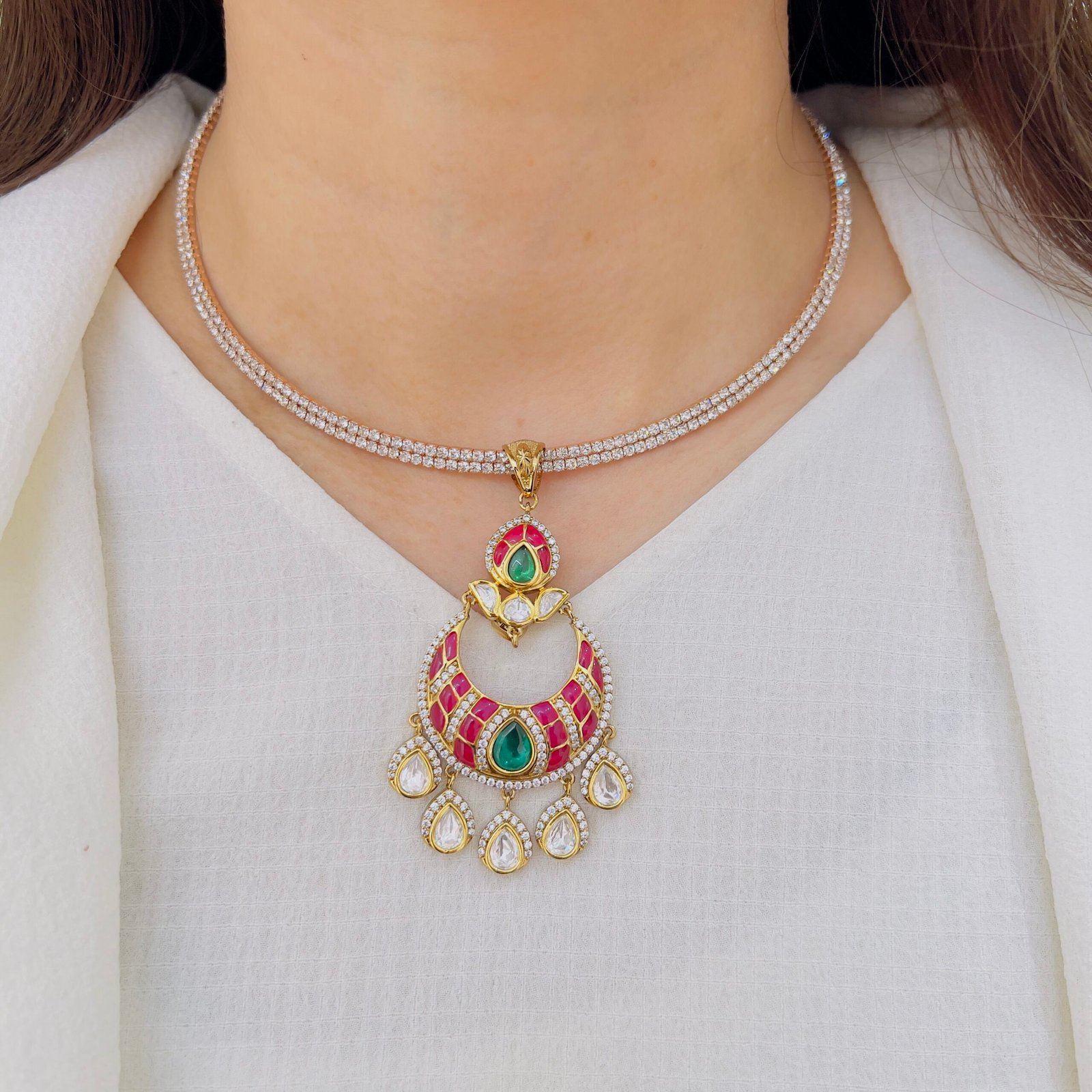 Showcasing ornate craftsmanship and graceful layered elements, this Victorian pendant set reflects timeless heritage charm. A statement piece that beautifully complements ethnic wear, adding depth, luxury, and royal appeal to special occasions.