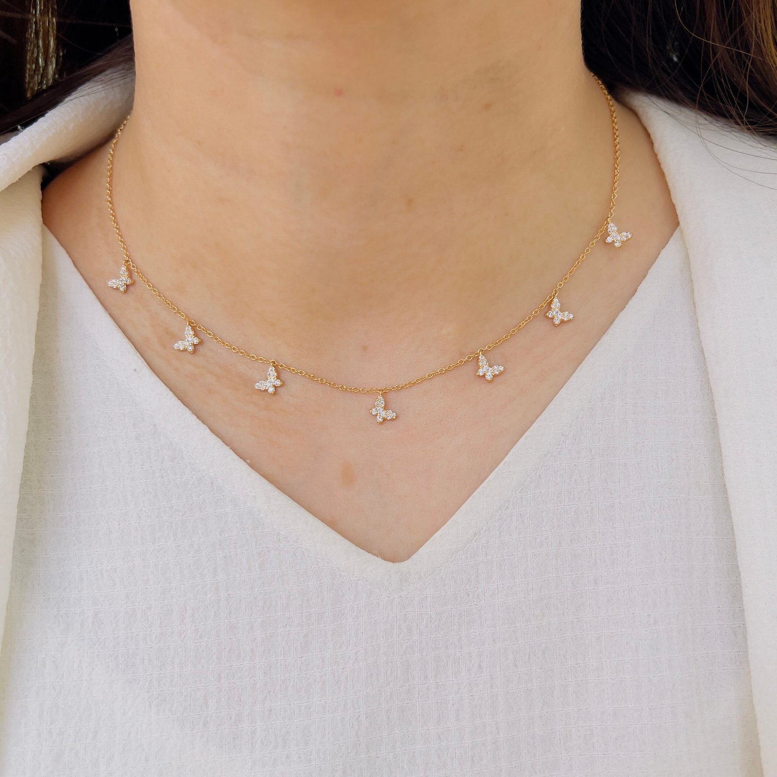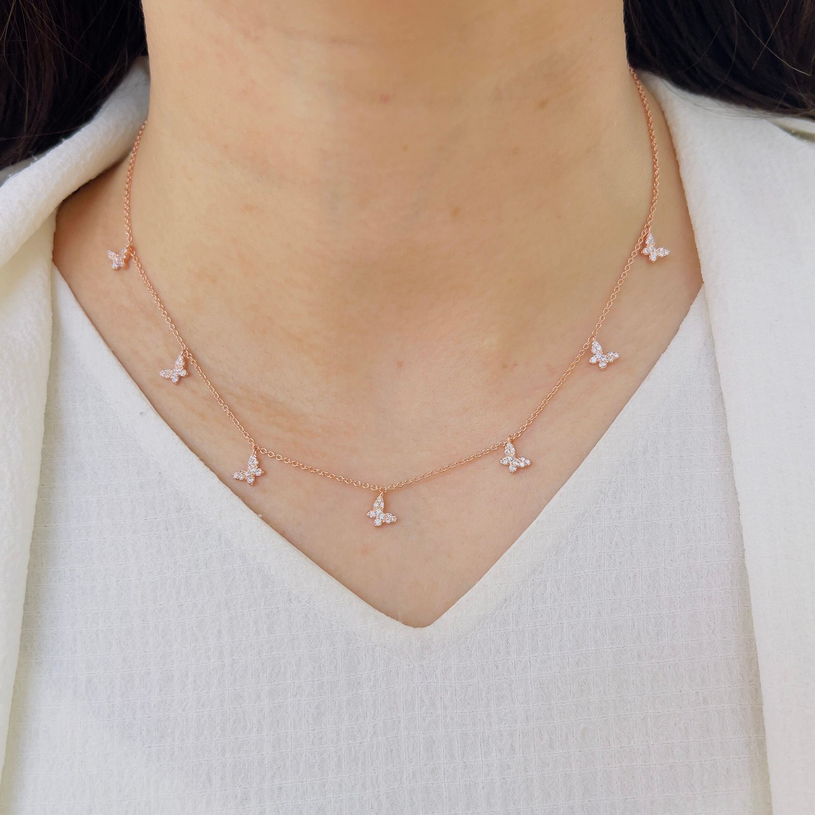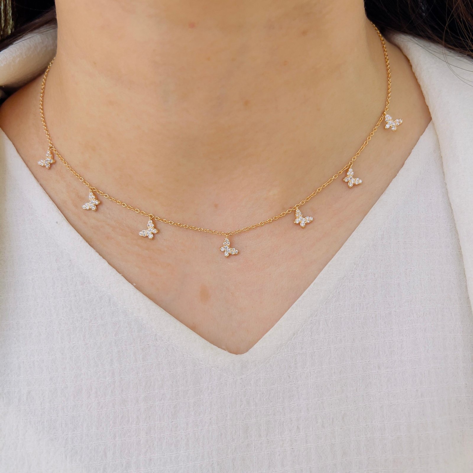 A delicate single-layer chain adorned with tiny butterfly charms that add just the right touch of sparkle. Light, graceful, and perfect for everyday elegance.