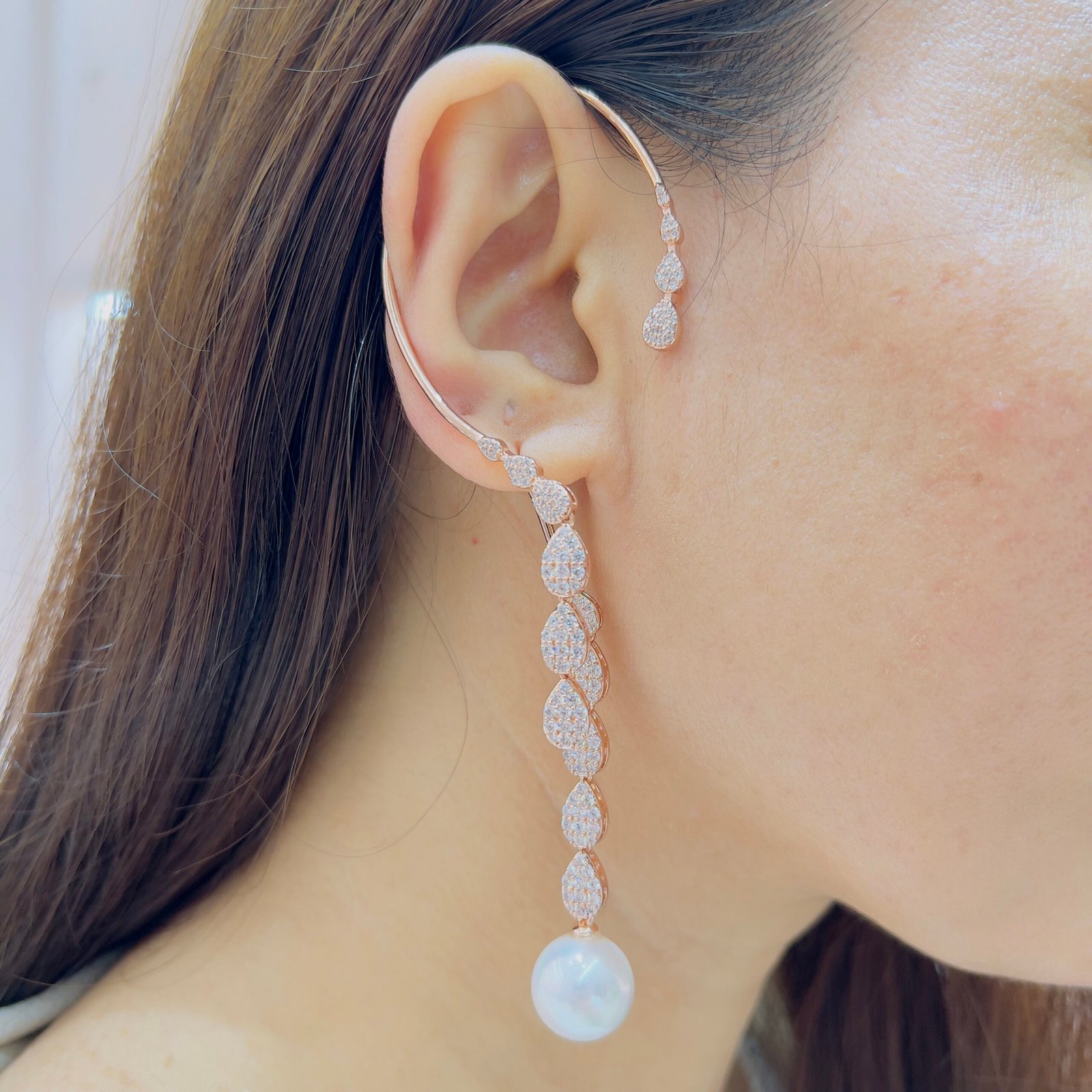 Inspired by starlight, these ear cuffs feature a radiant spread of shimmering stones with delicate chain drops, Lightweight yet eye-catching, they add instant sparkle to your look without the need for multiple piercings.