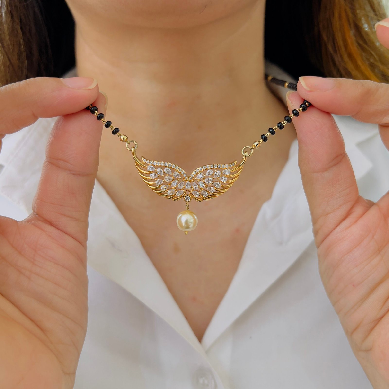 Designed with care, this 18K gold plated mangalsutra blends shine and strength, Its anti-tarnish coating and shiny stones make it ideal for everyday wear