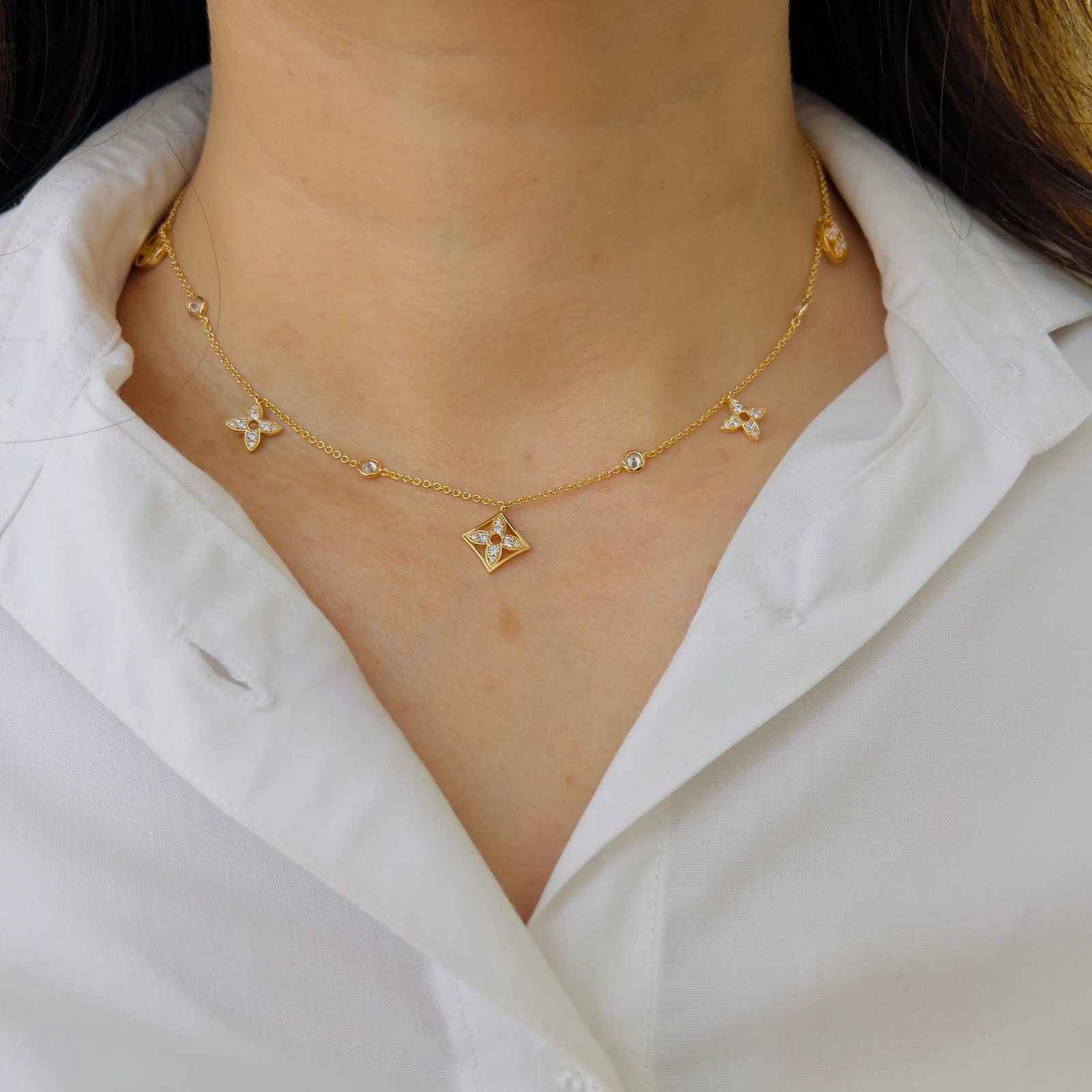 A stylish chain for daily and office wear, made with premium 18k gold plated shine, The anti-tarnish feature and rough-use quality keep it new for long, while shiny stones offer a beautiful sparkle throughout the day.