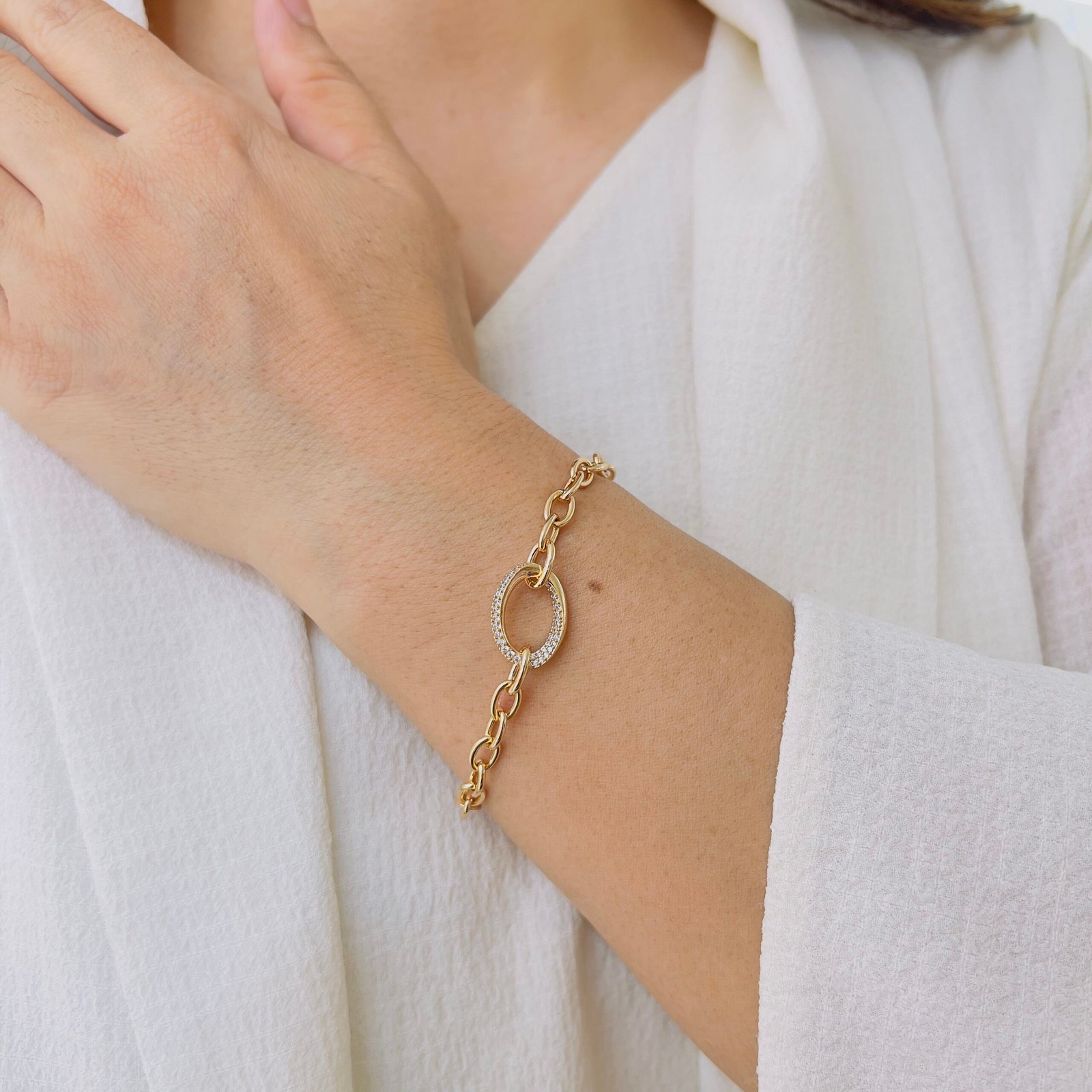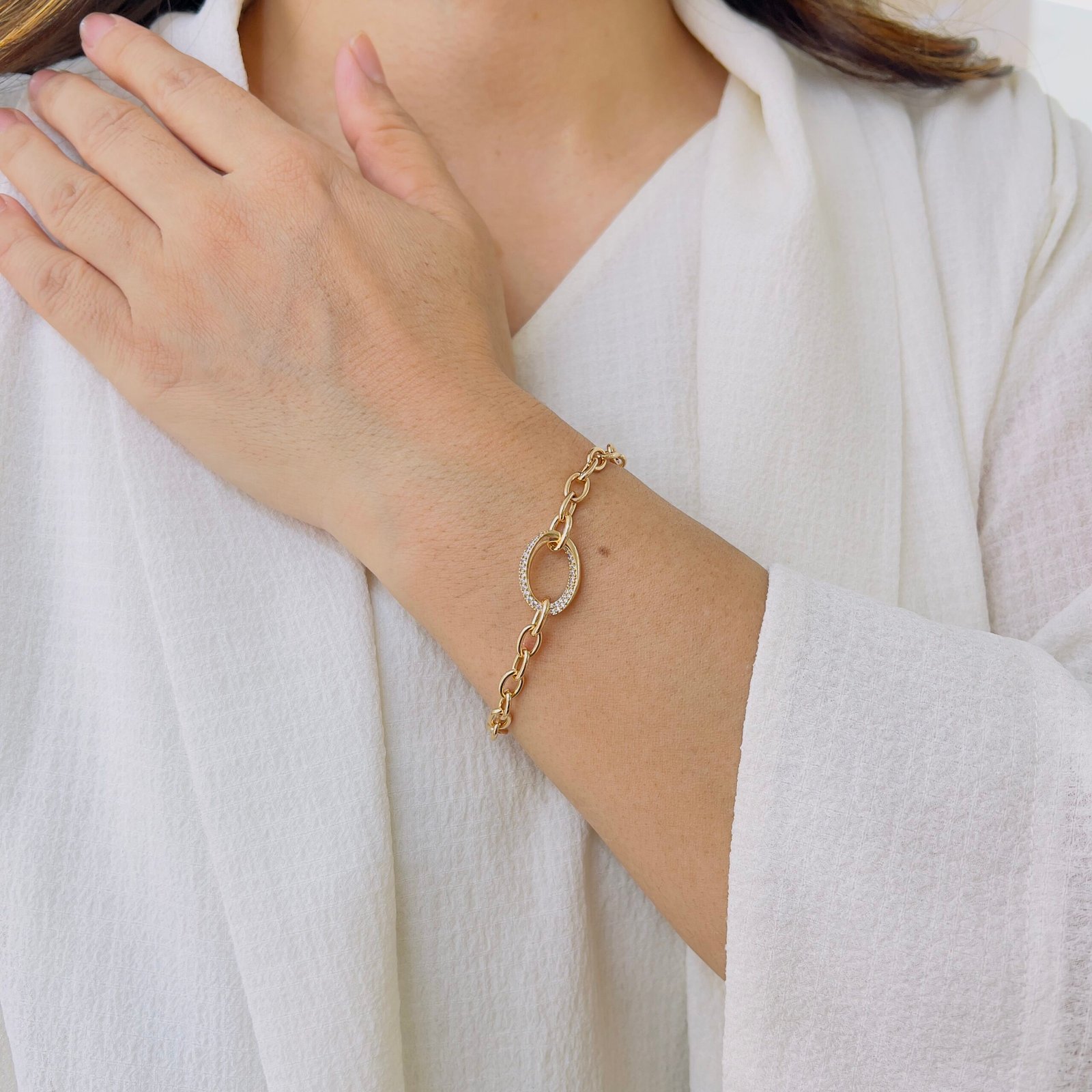 A timeless bracelet featuring a clean, minimal design perfect for daily styling, Comfortable for long hours, it complements office wear while maintaining its shine and durability.