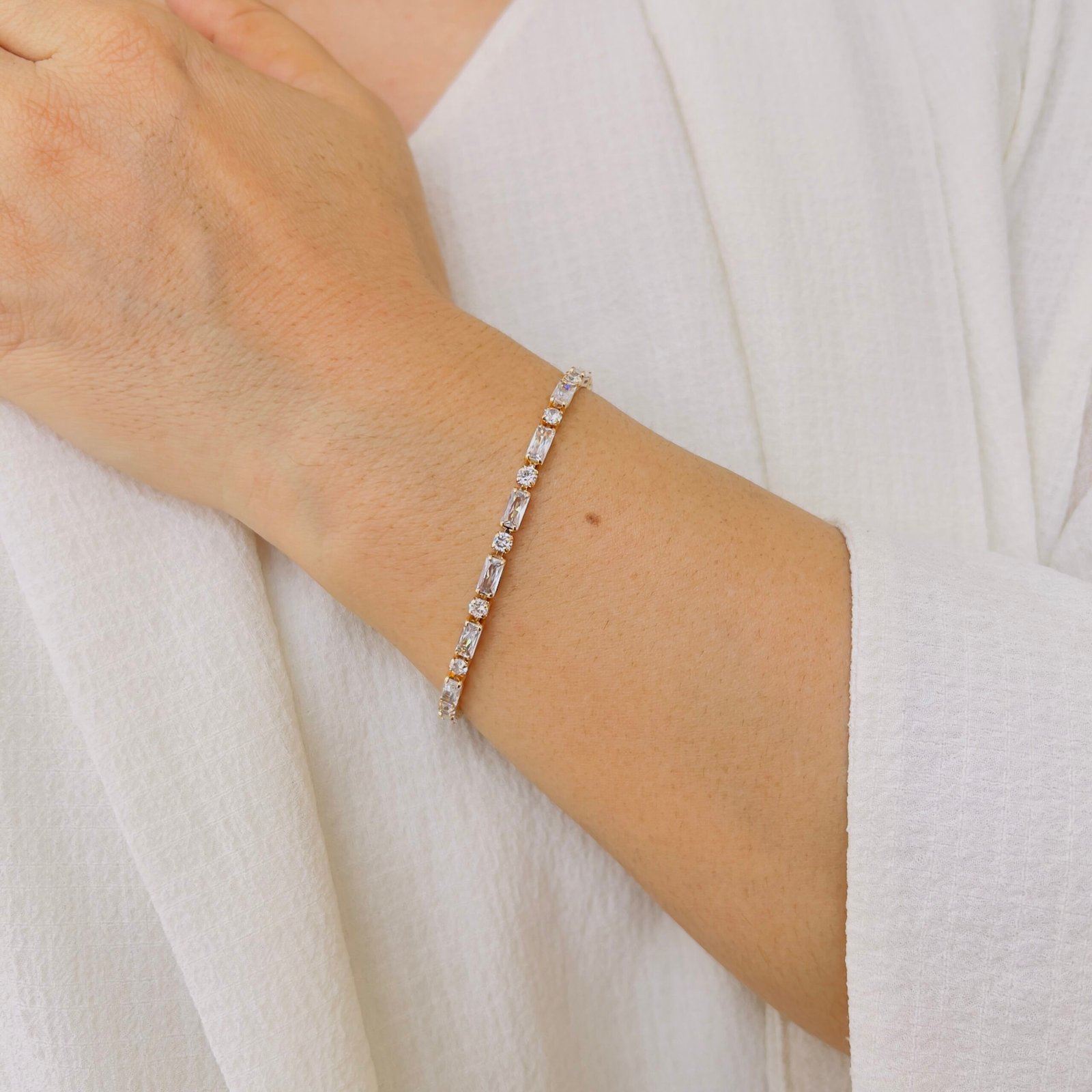 Featuring a rich 18K gold plated finish and glossy stones, this bracelet resists tarnishing and is perfect for daily wear. Built to handle rough use while keeping a refined, elegant shine.