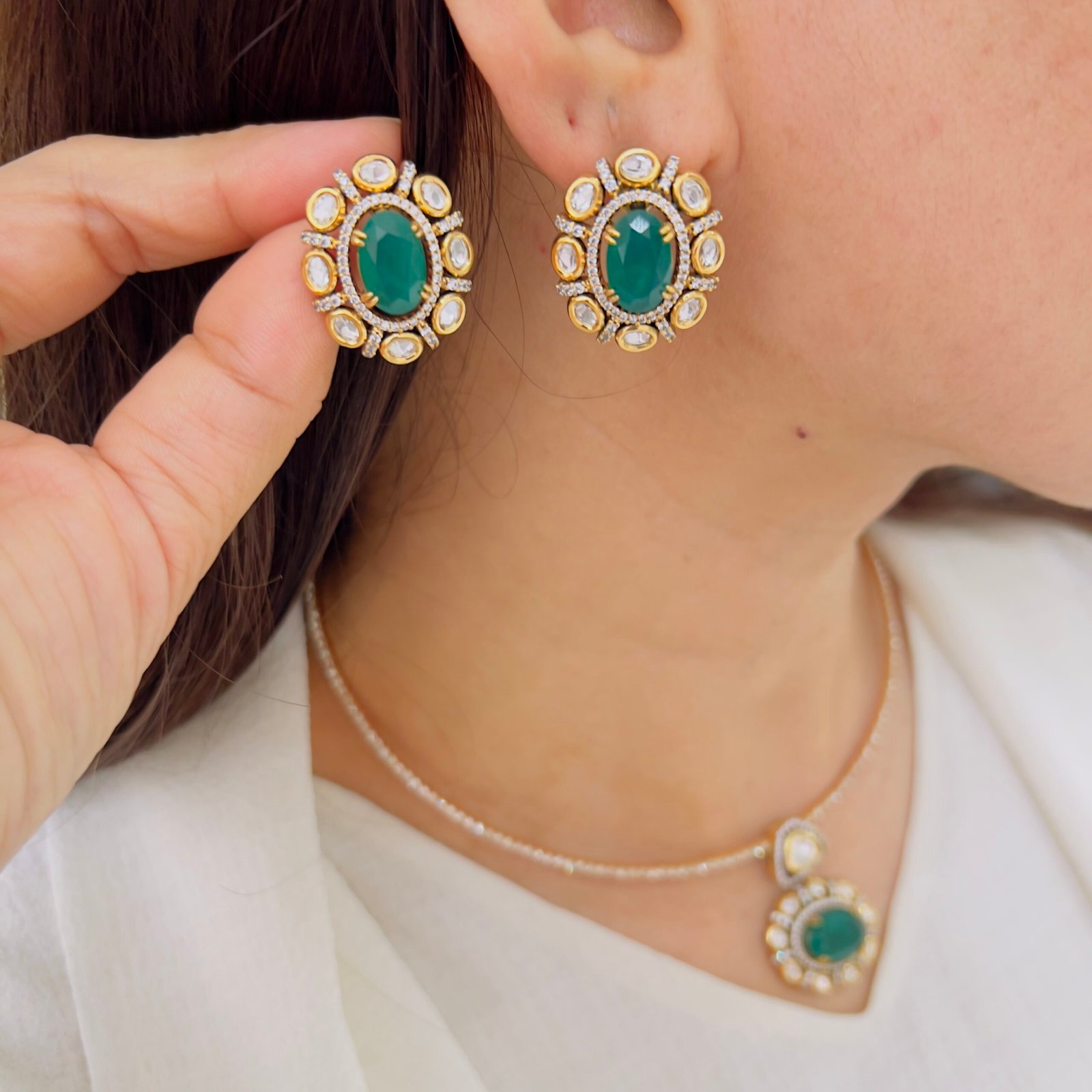 Designed with rich Victorian inspiration, this pendant set highlights intricate textures and refined artistry, a sophisticated accessory that complements ethnic and fusion outfits with enduring charm and vintage allure.