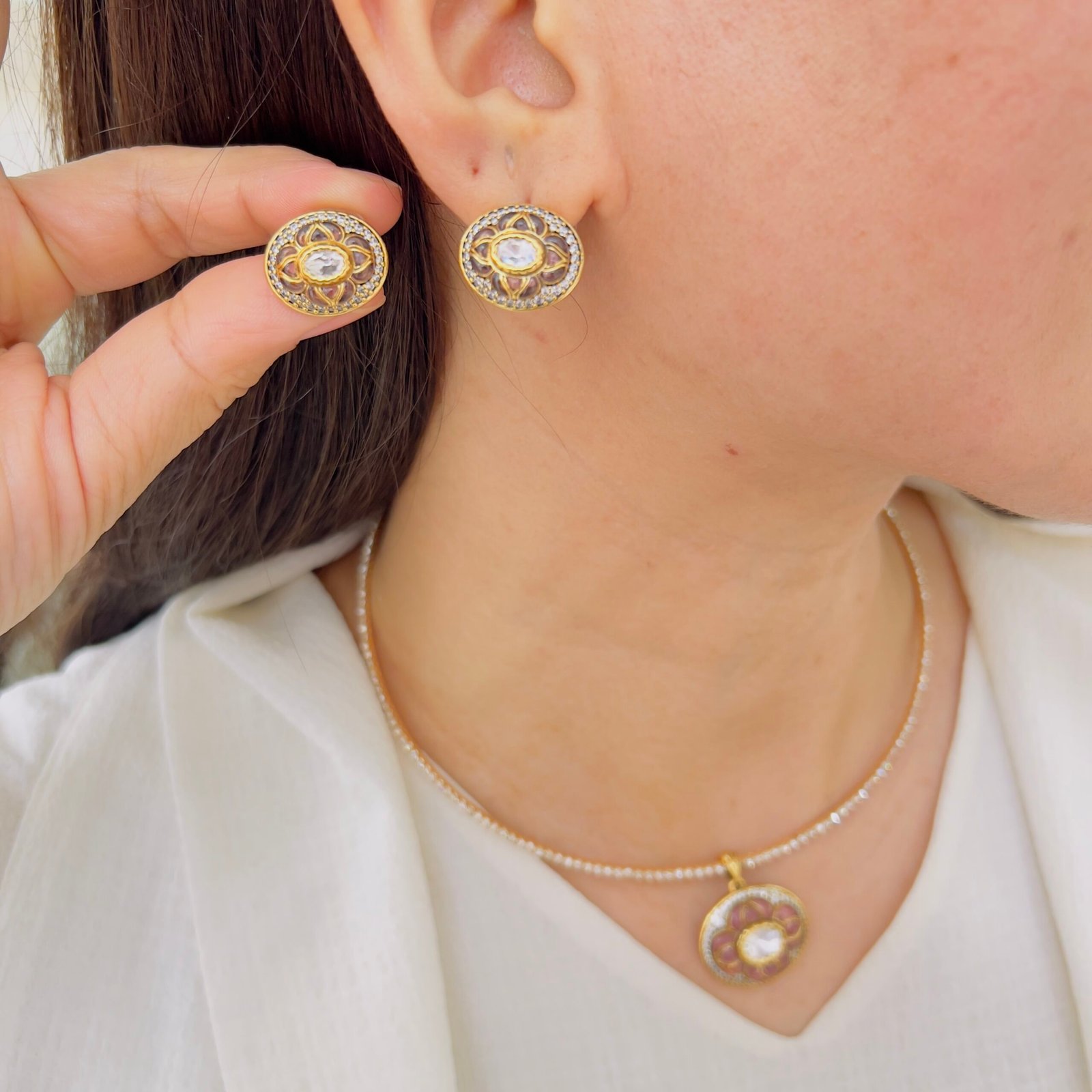 Showcasing intricate patterns and a beautifully proportioned design, this Victorian pendant set reflects old-world charm. Ideal for festive gatherings and elegant evenings, it adds a graceful and polished finish.