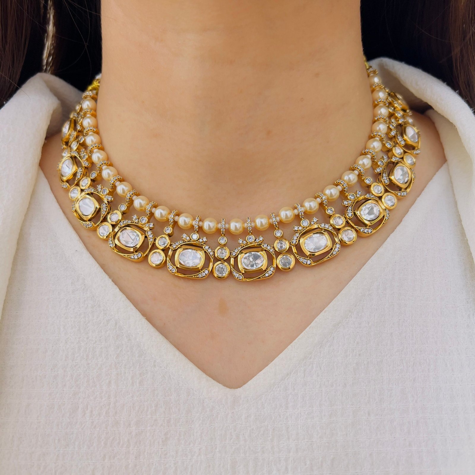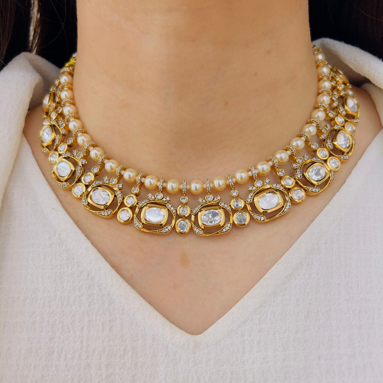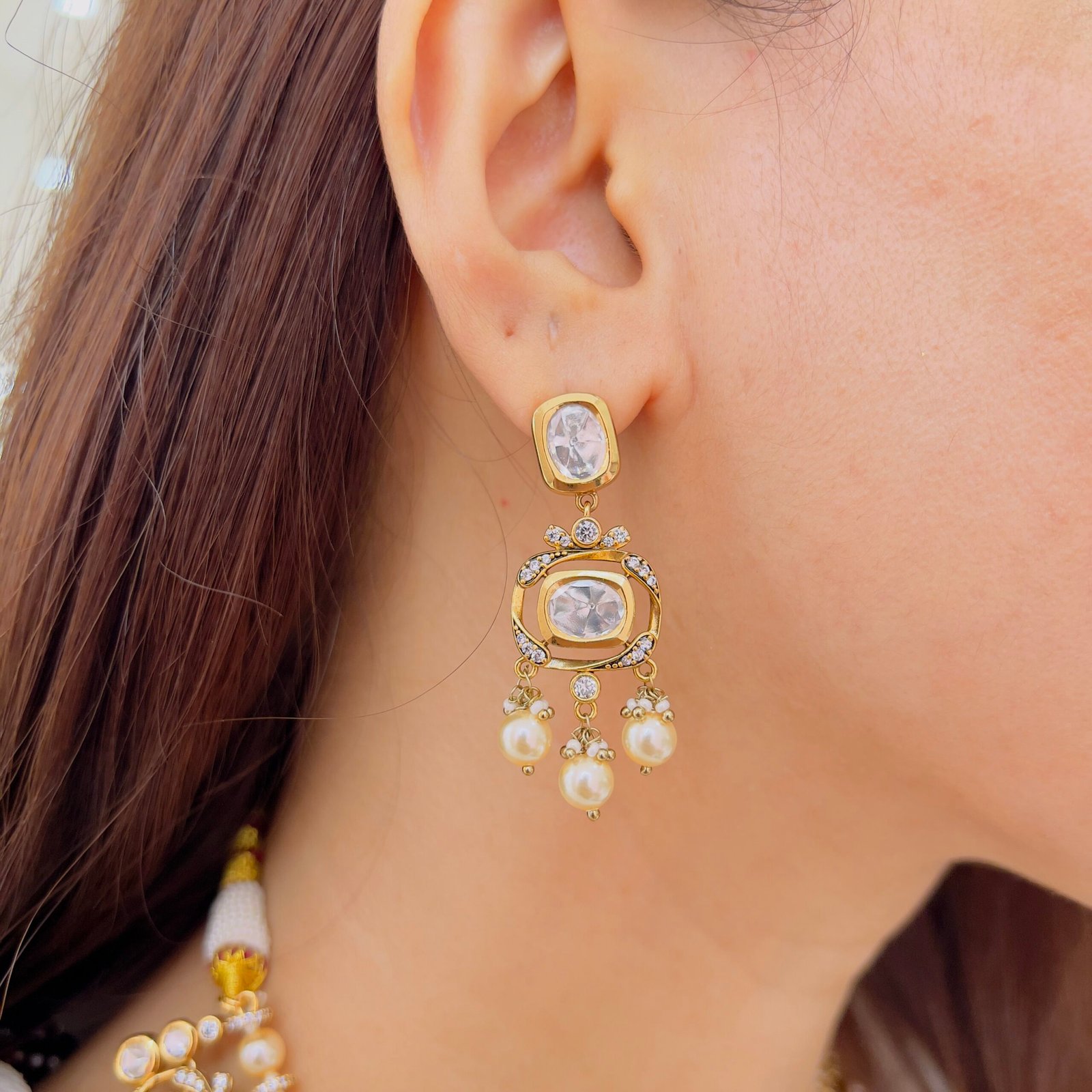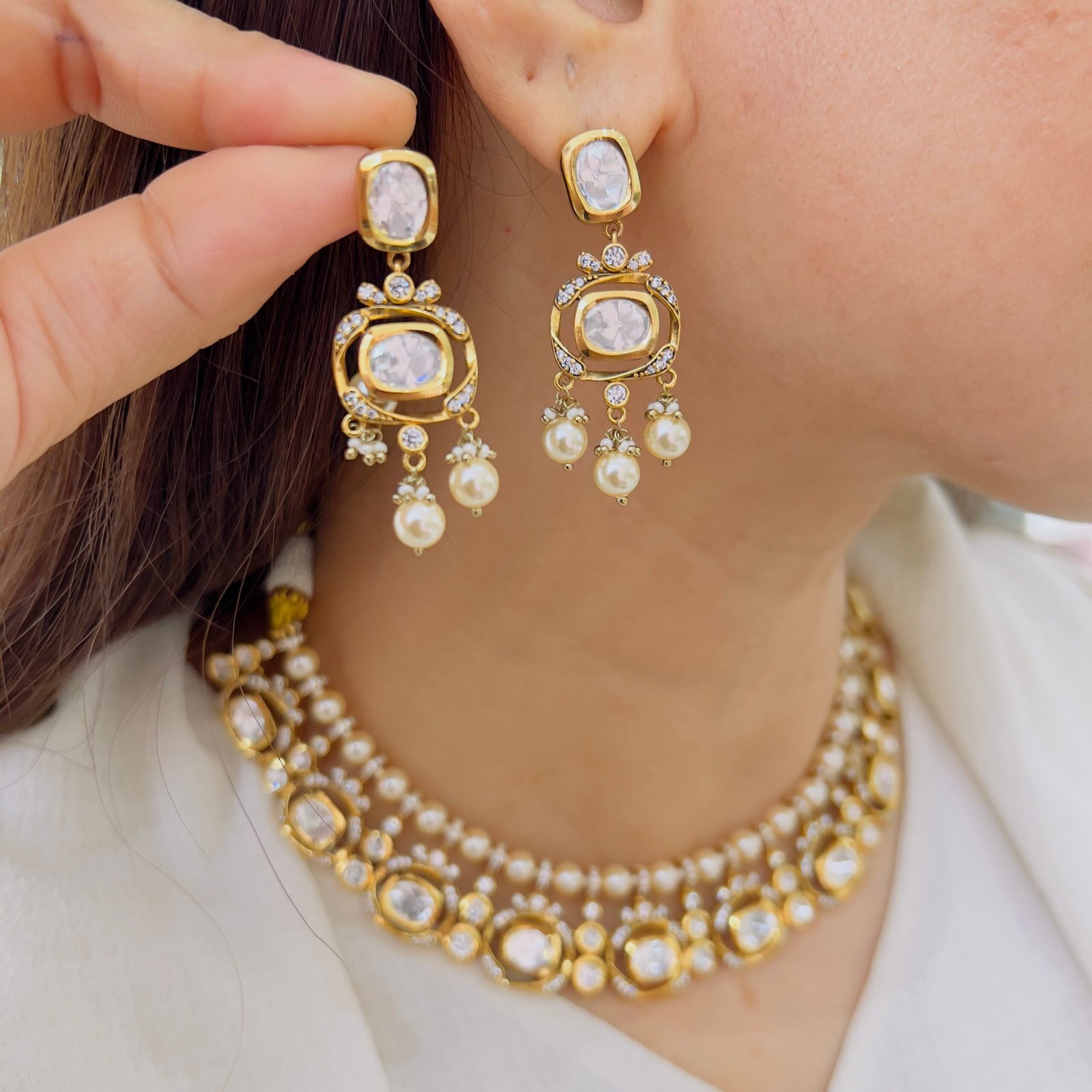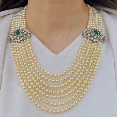 Add a touch of royal glamour to your collection with this stunning Victorian necklace set, Adorned with shimmering stones and delicate pearl danglers, it offers a luxurious finish while remaining lightweight and comfortable for long wear. Ideal for bridal wear and special occasions.