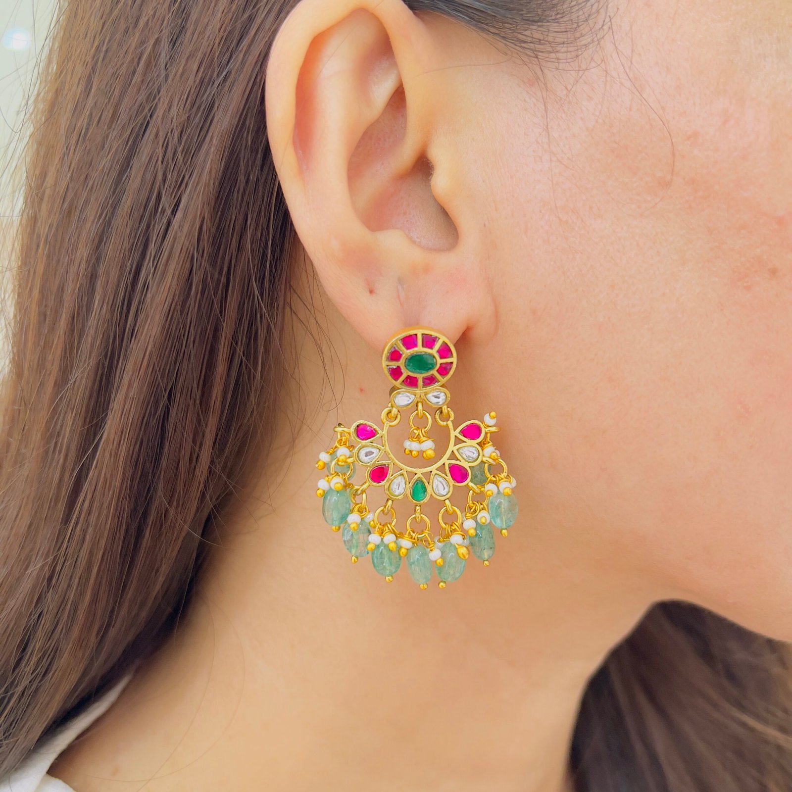 Turn every moment into a statement with these stunning Jadau earrings, Designed with intricate artistry and a refined finish, they add depth, elegance, and a bold traditional touch to your overall look.