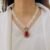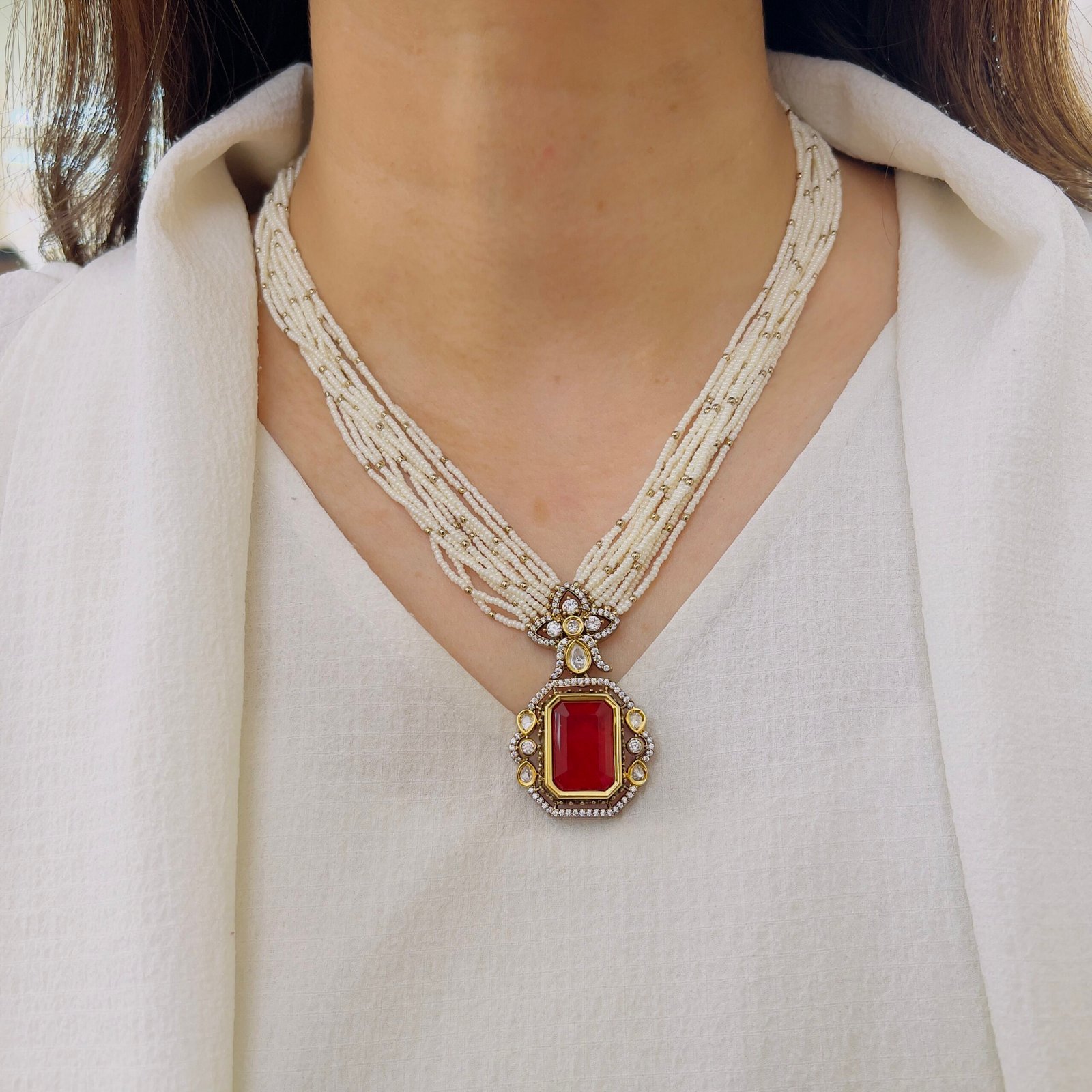 Crimson Radiance: Ruby-Red Statement Pendant with Multi-Strand Seed Pearls