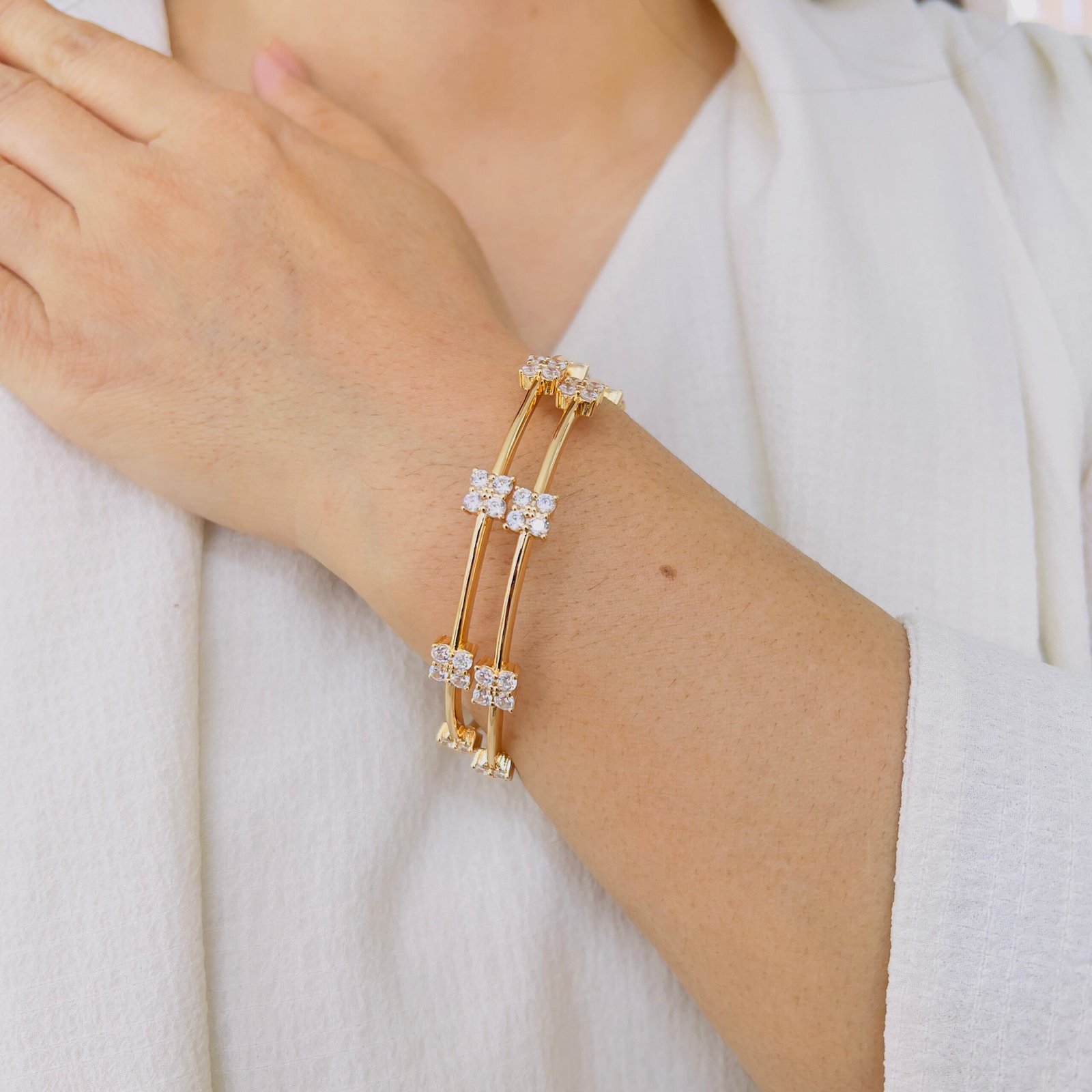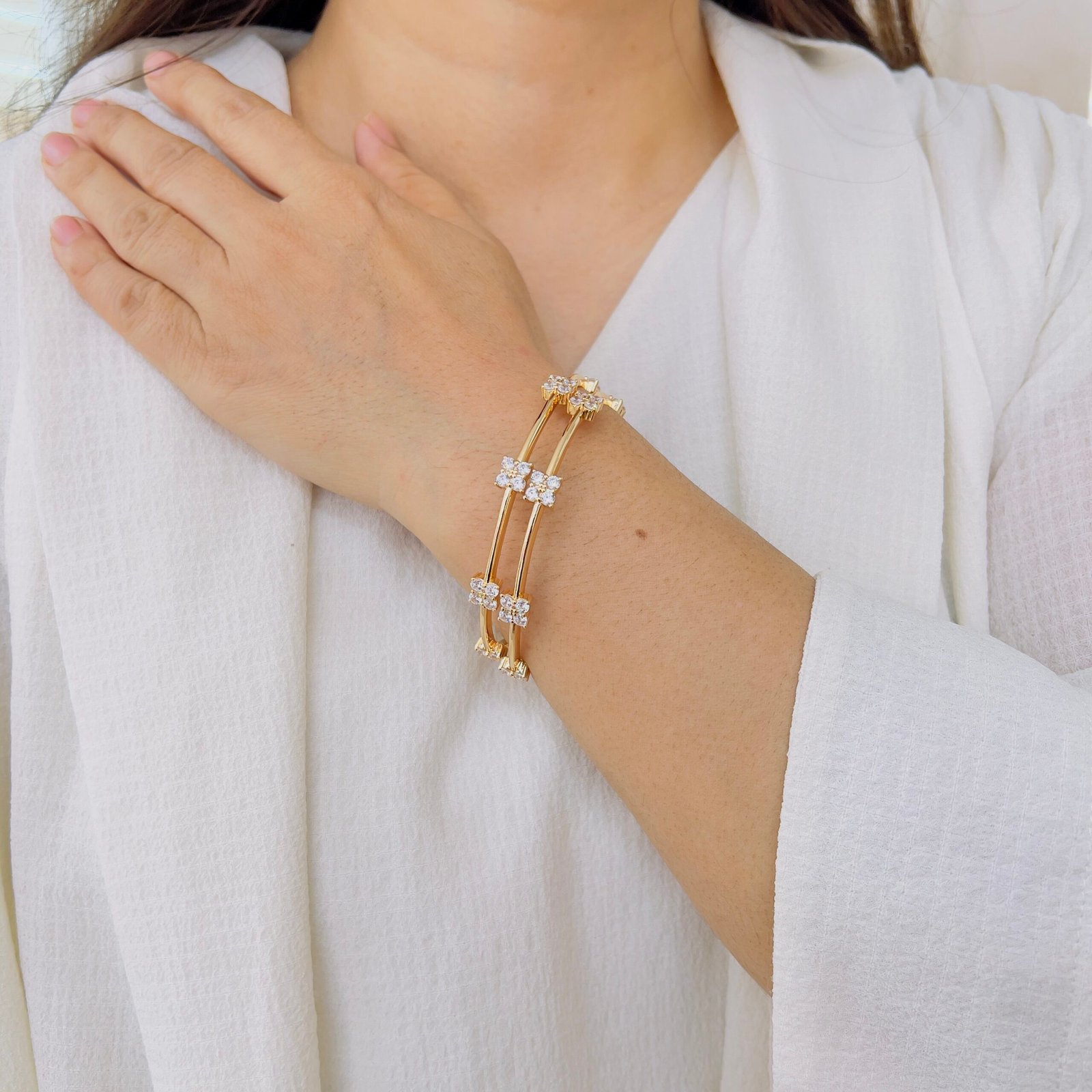 Crafted for modern women, this 18k Gold-Plated Diamond Bangle offers Anti-Tarnish shine, Water Resistance, and durability for daily wear, Stay effortlessly elegant from morning to night.