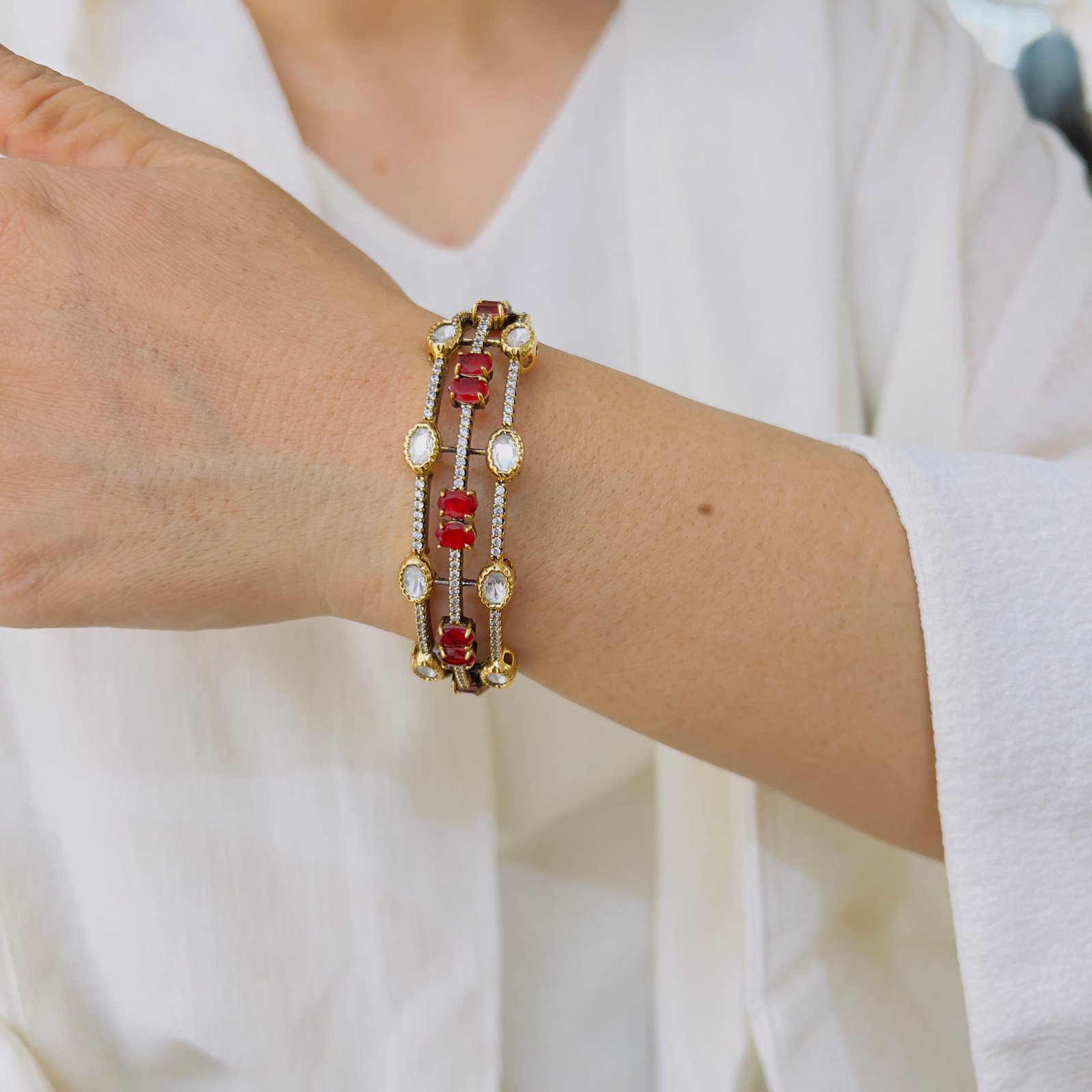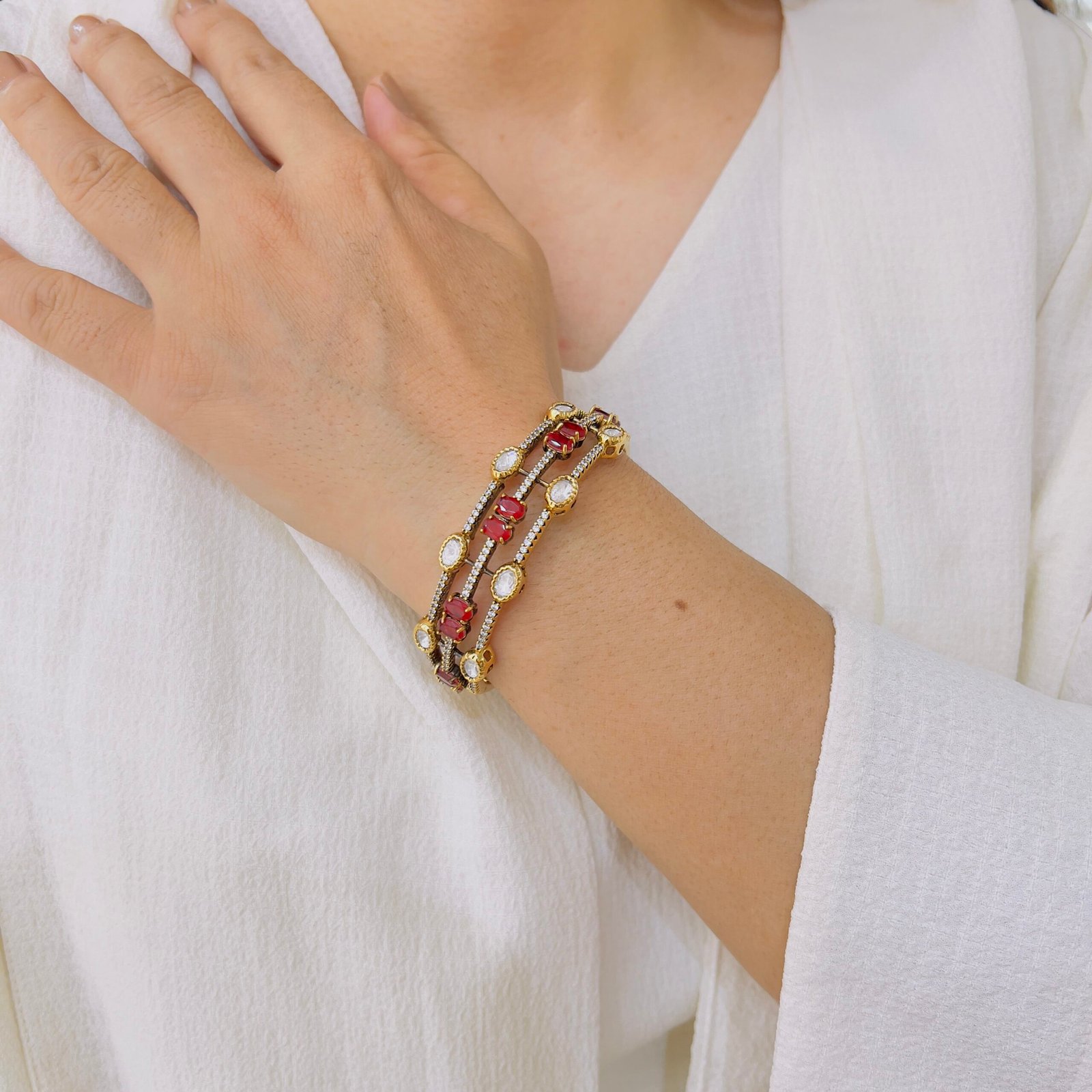Step into royal charm with 18k Gold-Plated, Anti-Tarnish Victorian bangles, Ideal for roughly wear, balancing bold gemstone allure with everyday sophistication.