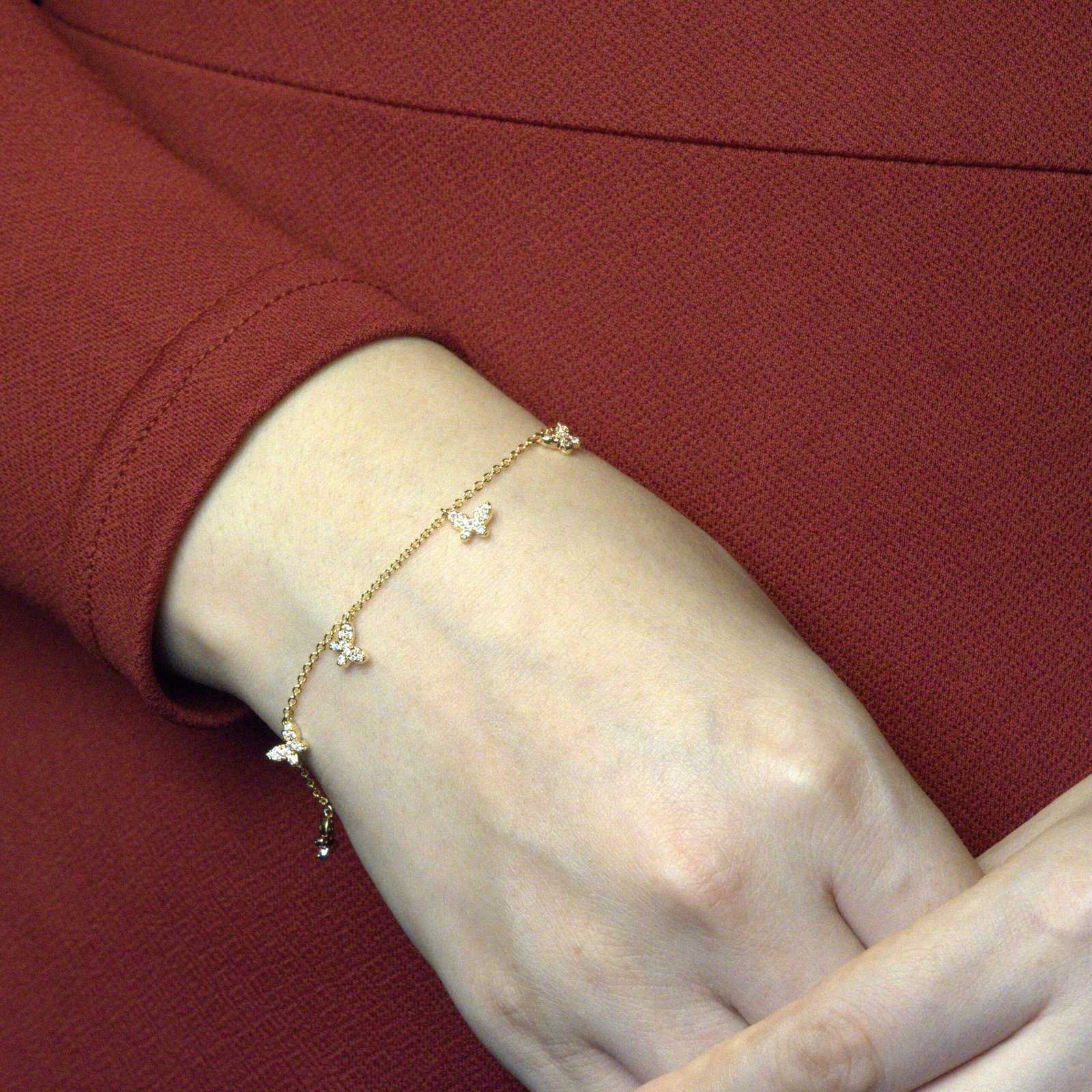 Elevate your style with this 18k Gold-Plated Butterflies Adjustable Bracelet, Designed for daily wear, it features full anti-tarnish protection, ensuring your delicate accessory stays radiant and beautiful always.