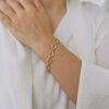 This beautifully crafted dual-line bangle features dazzling stones set in a sleek 18K gold plated design, Anti-tarnish and perfect for rough daily use, it offers lasting shine and a premium finish. A stylish statement piece that adds effortless elegance to any outfit.