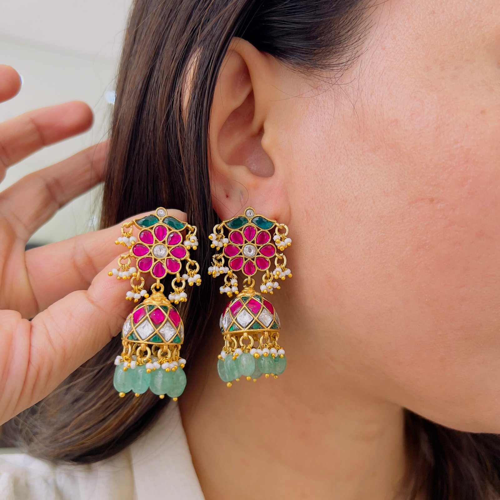 Elegant 18K Gold-Plated Jadau Jhumka for Every Occasion