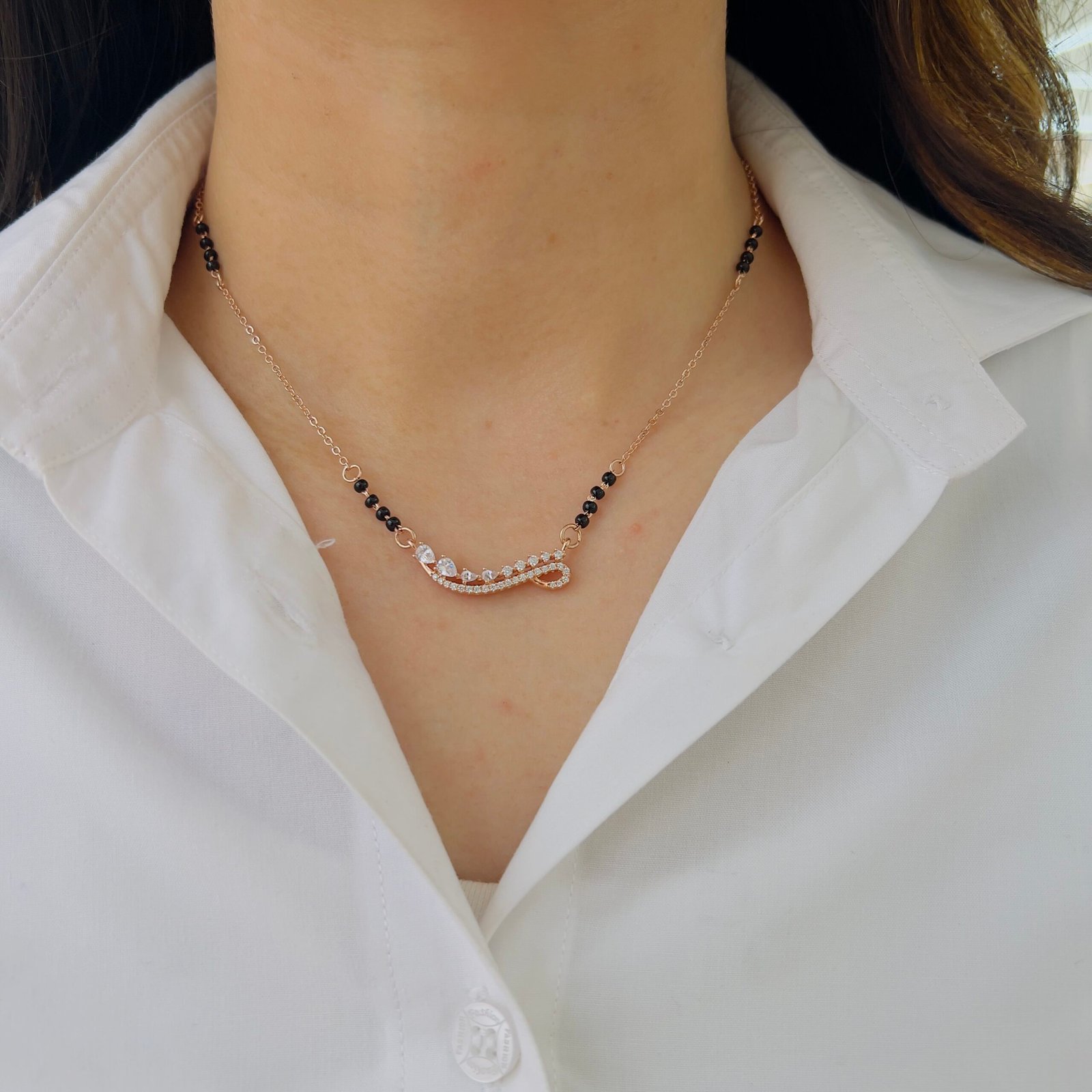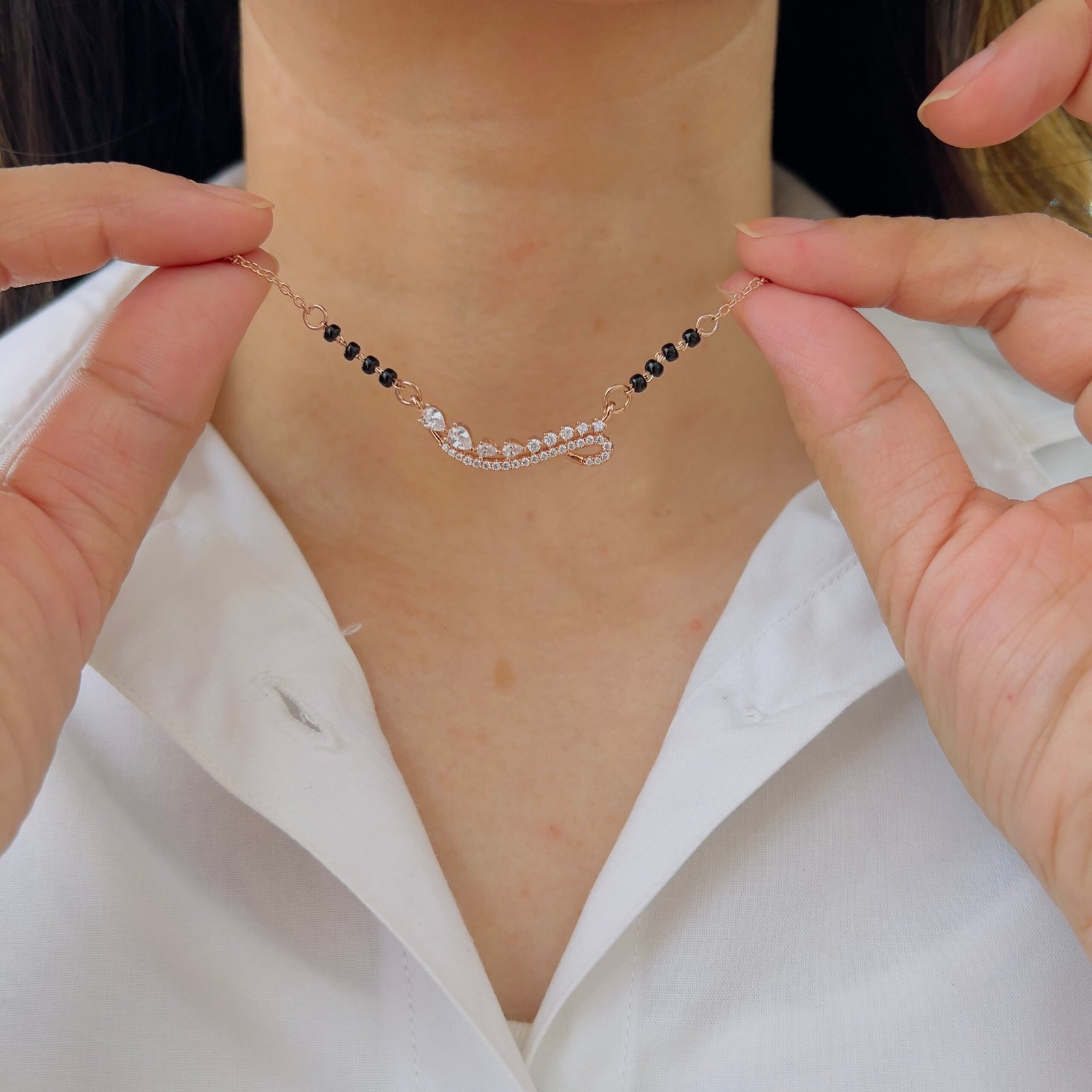 This 18K gold plated mangalsutra is perfect for daily wear, Designed with shiny stones, it’s anti-tarnish, durable for rough use, and adds elegance to every outfit—balancing tradition with modern charm.