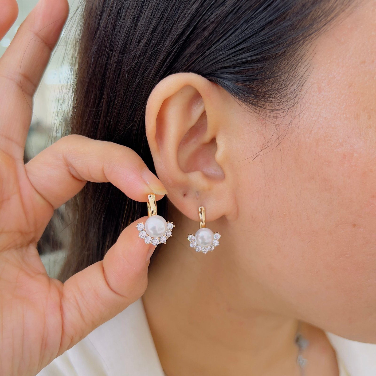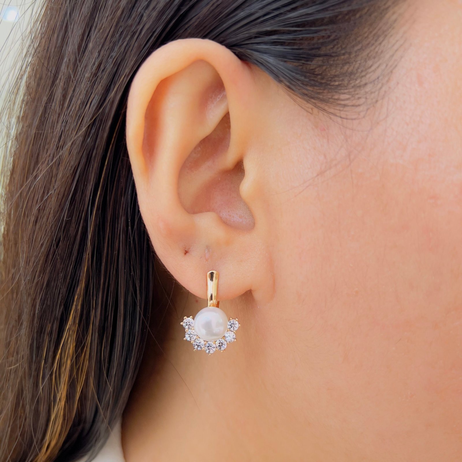 These 18k gold plated pearl earrings offer everyday elegance, With anti-tarnish coating and shiny stones, they’re durable for rough use, perfect for adding subtle sparkle to your daily wear and office outfits.