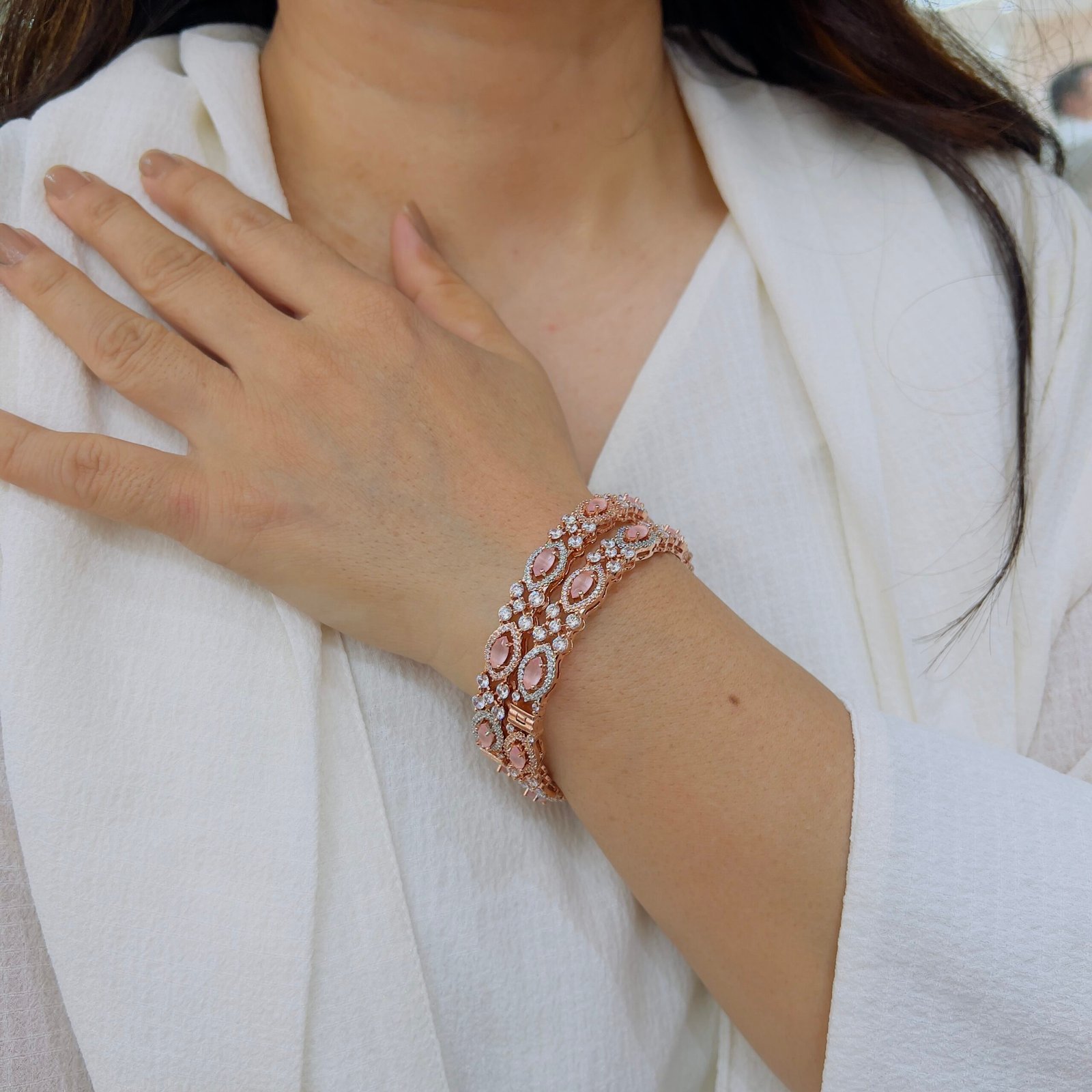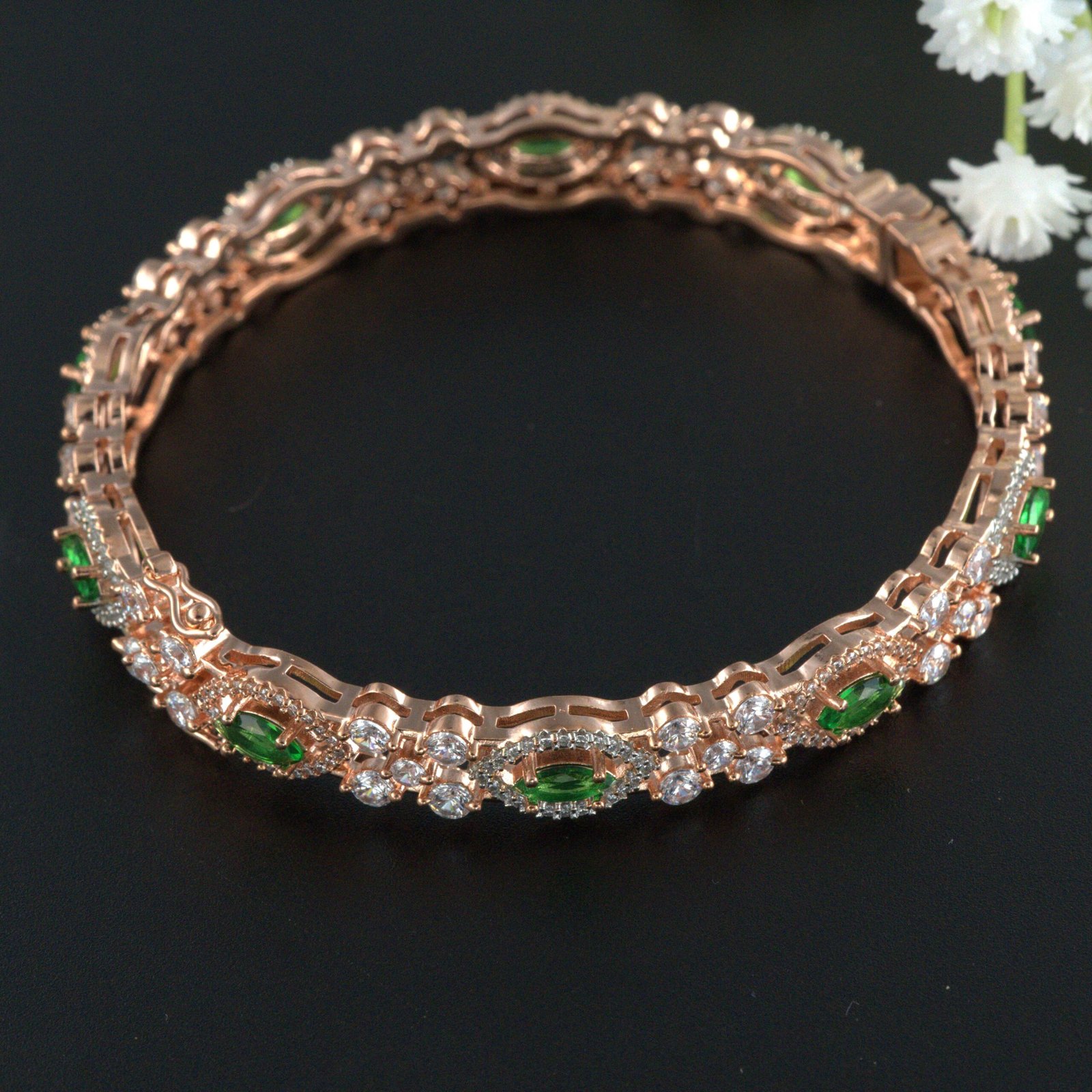 With 18K gold plating and brilliant diamonds, this hand-made bangle resists tarnish and can be worn roughly—perfect blend of luxury, elegance, and lasting craftsmanship.