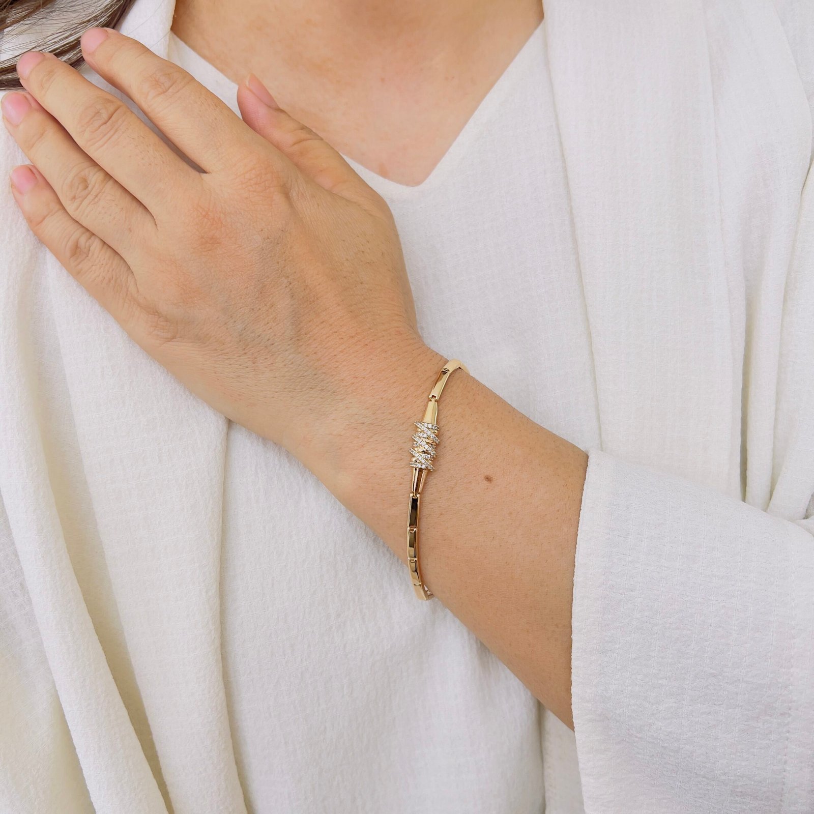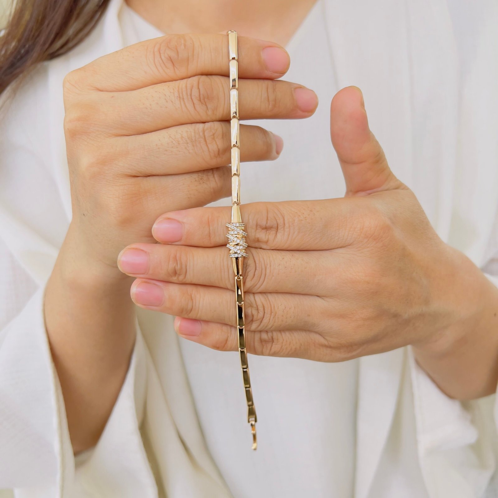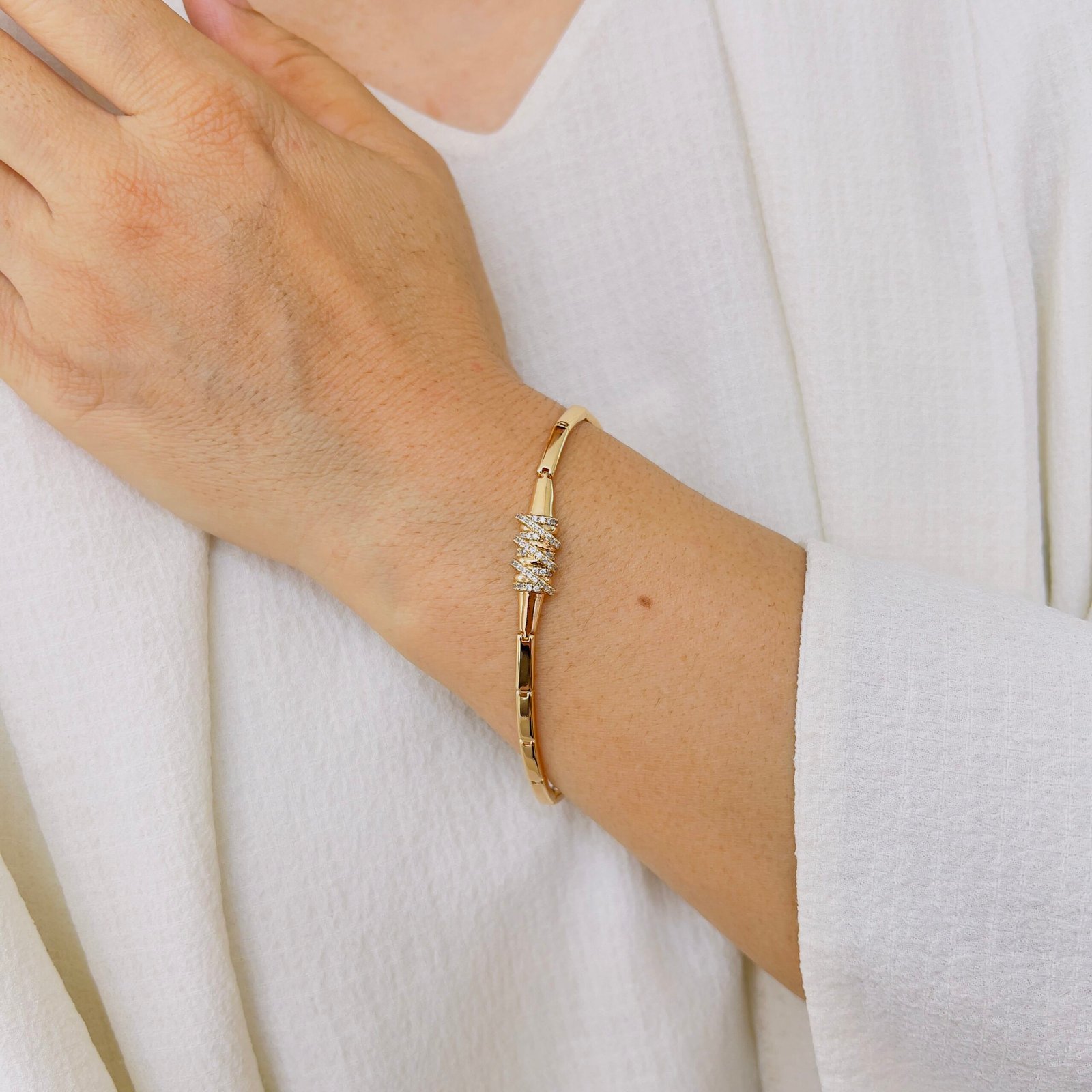 Crafted with 18K gold plating and shiny stones, this bracelet offers anti-tarnish durability for everyday wear, Suitable for office and daily use, it combines strength and shine for long-lasting comfort and style.