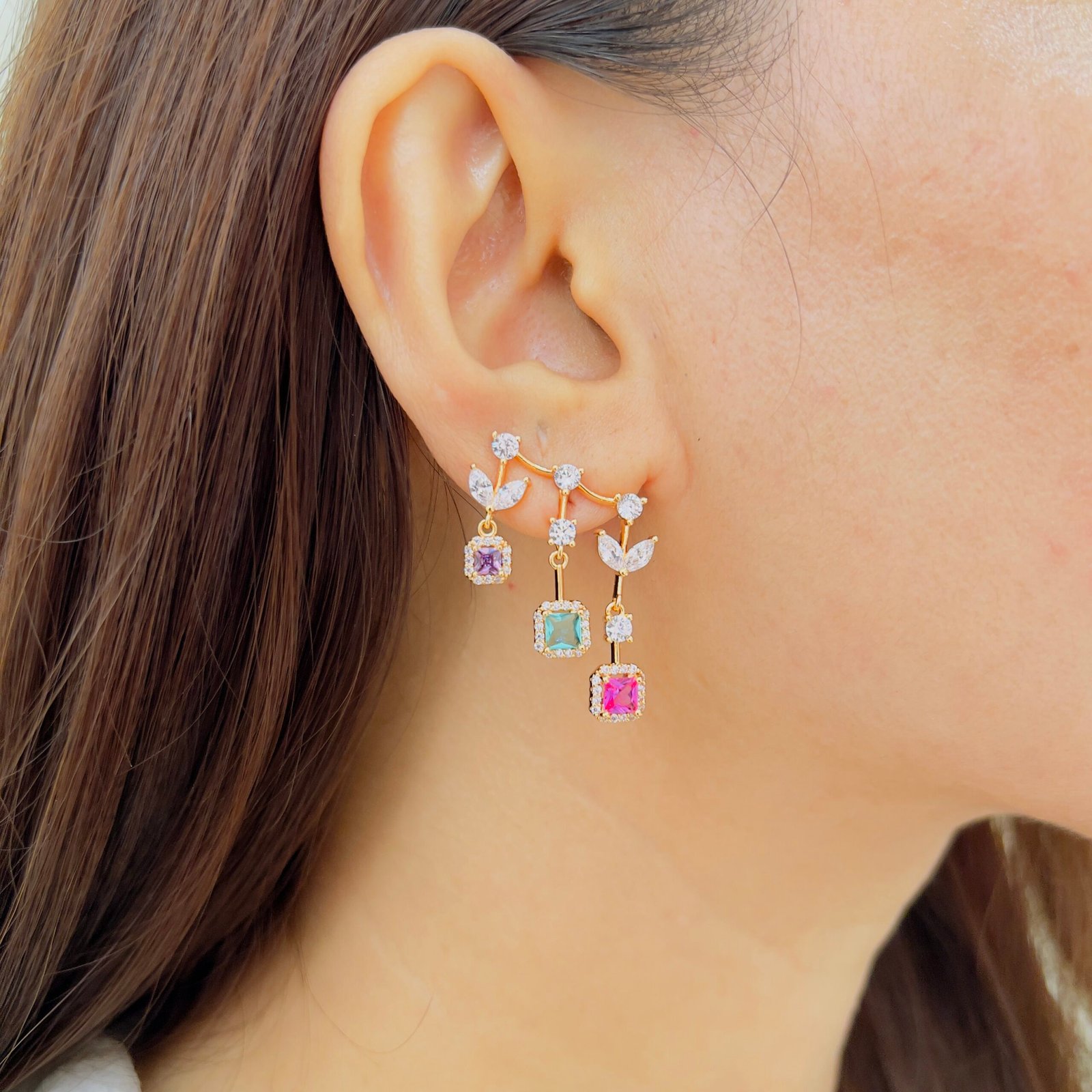 These beautifully crafted designer earcuffs feature sparkling diamond-style stones arranged in a graceful layered pattern with a luxurious gold finish, a statement accessory that adds refined elegance to festive occasions, parties, and elevated everyday looks.