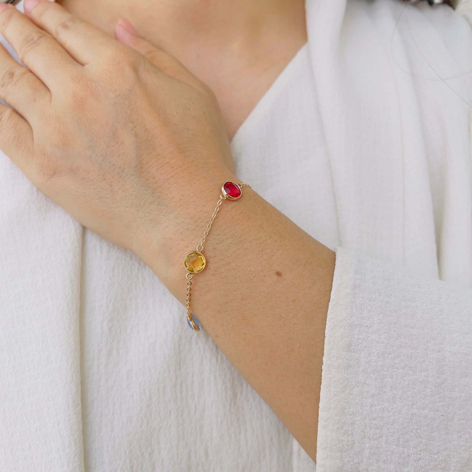 This elegant chain bracelet features finely set colorful stones that add a soft touch of charm to your everyday look. Designed to be lightweight and comfortable, it’s perfect for daily wear, office wear, or casual outings, A minimal yet graceful piece that blends effortlessly with any outfit.