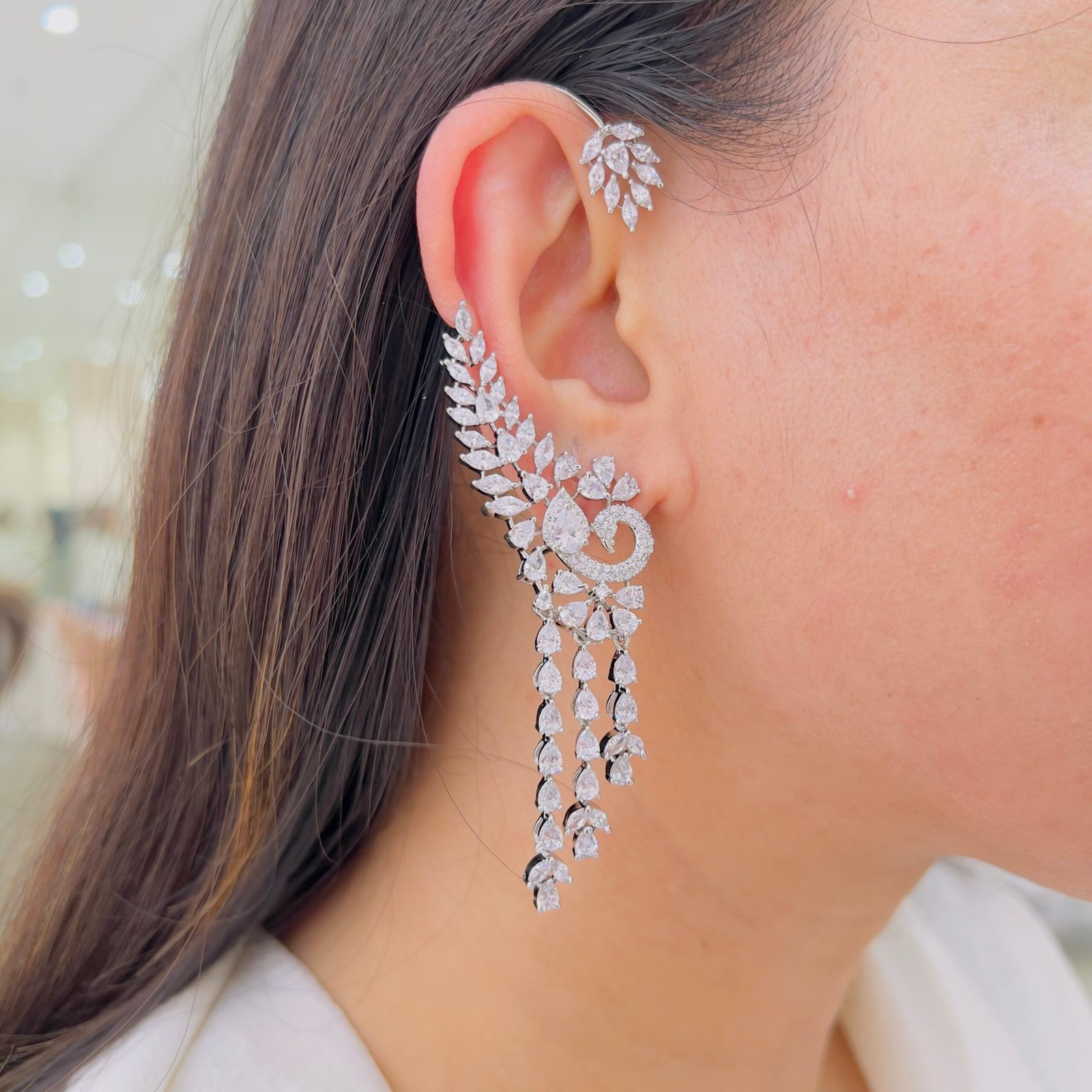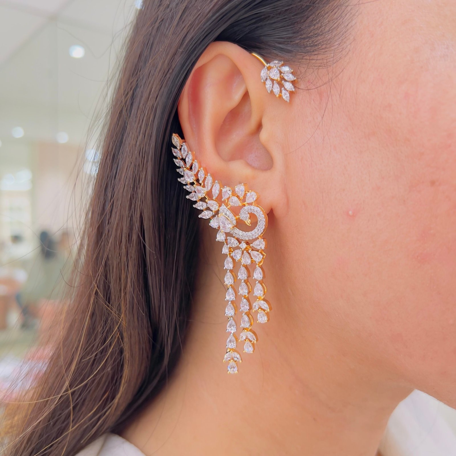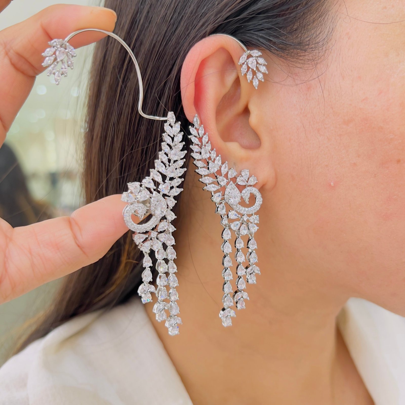 Intricately designed earcuffs inspired by floral and leaf patterns, featuring fine detailing that adds a graceful sparkle. Perfect for festive occasions, parties, and elegant ethnic or fusion looks.