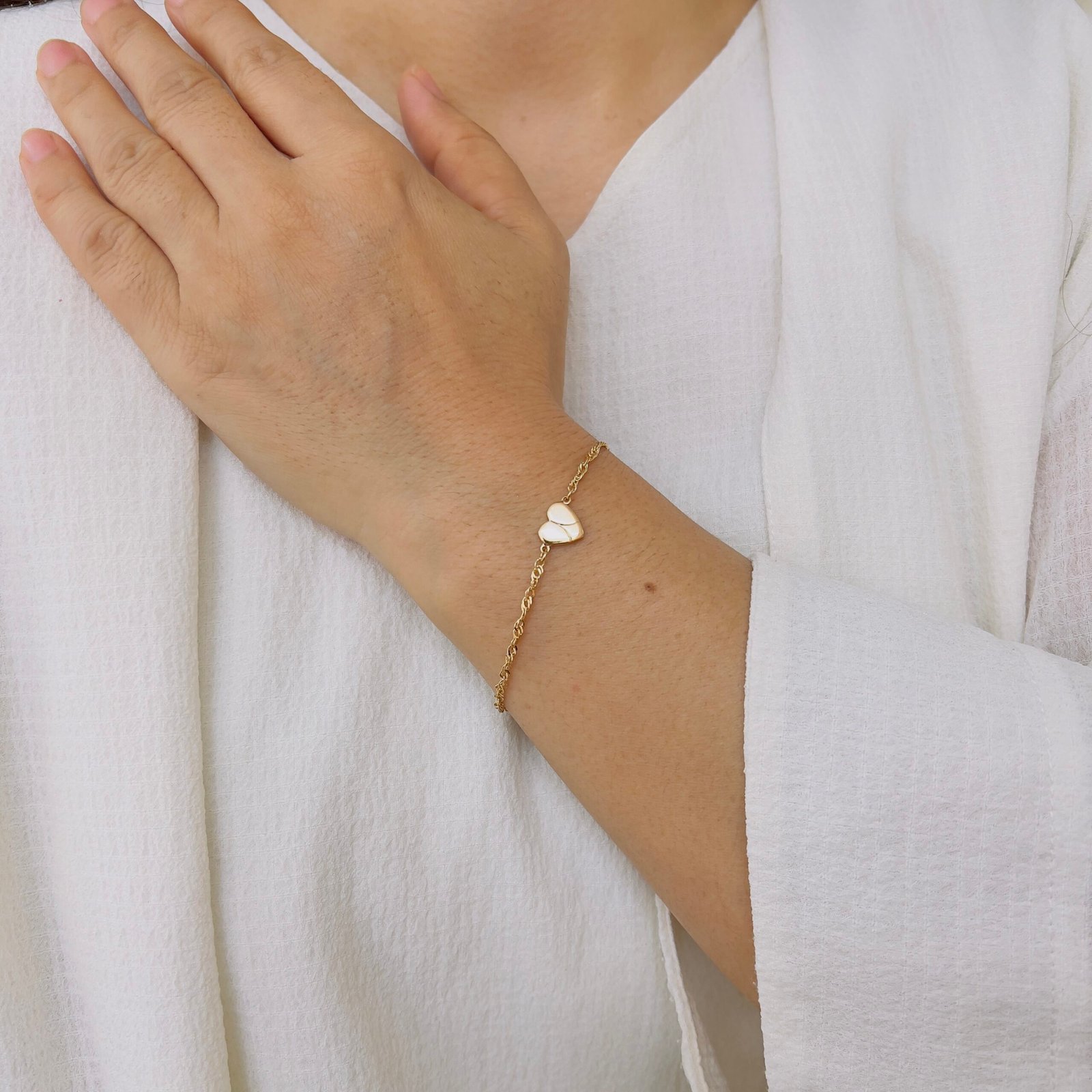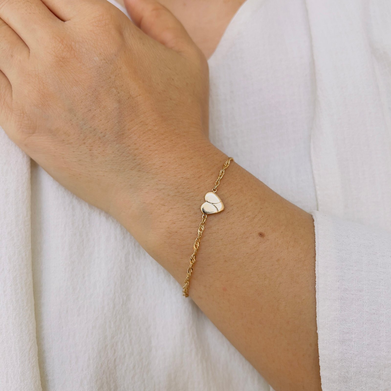 A symbol of love and simplicity, this delicate bracelet features a minimal heart charm that adds a soft, graceful touch to your everyday style.