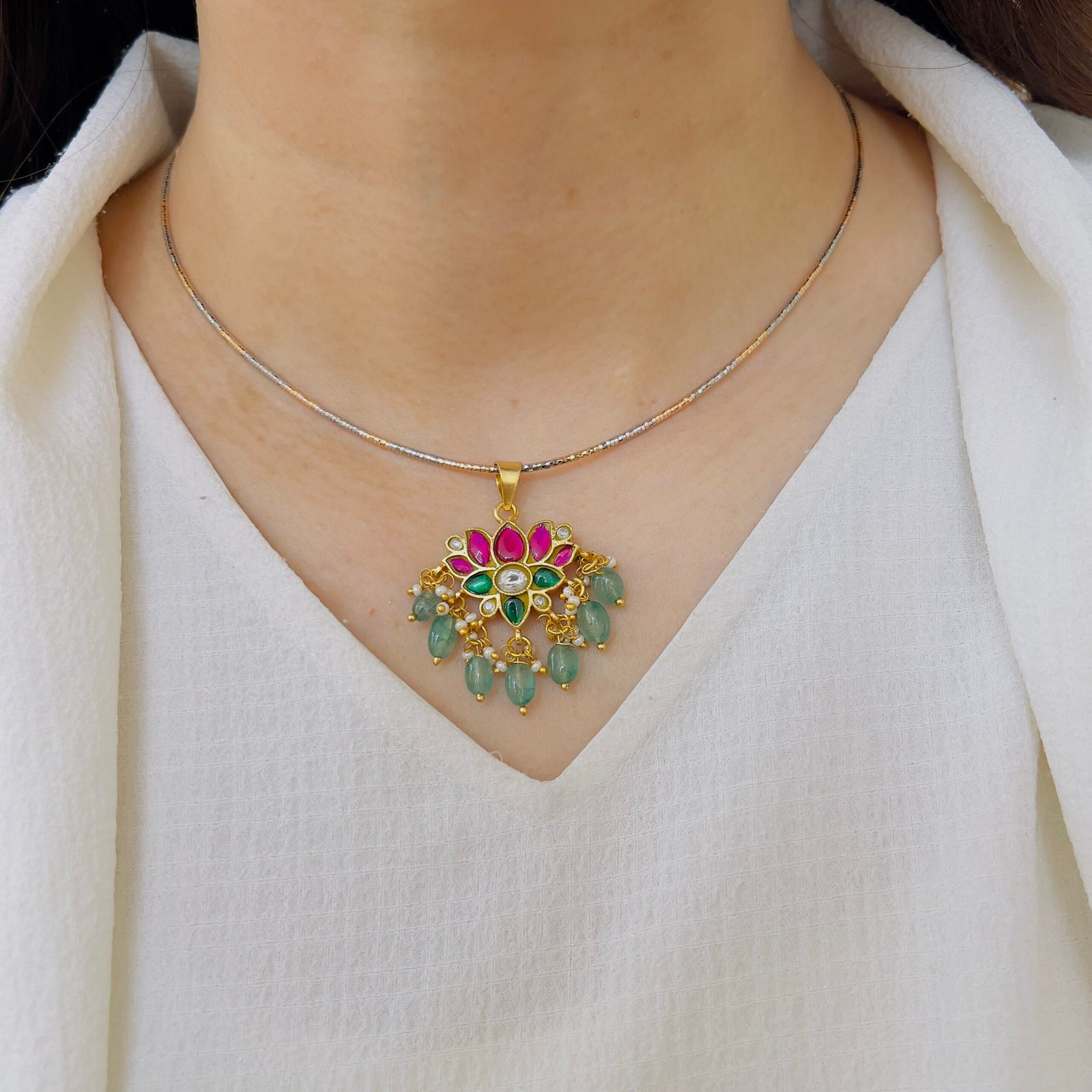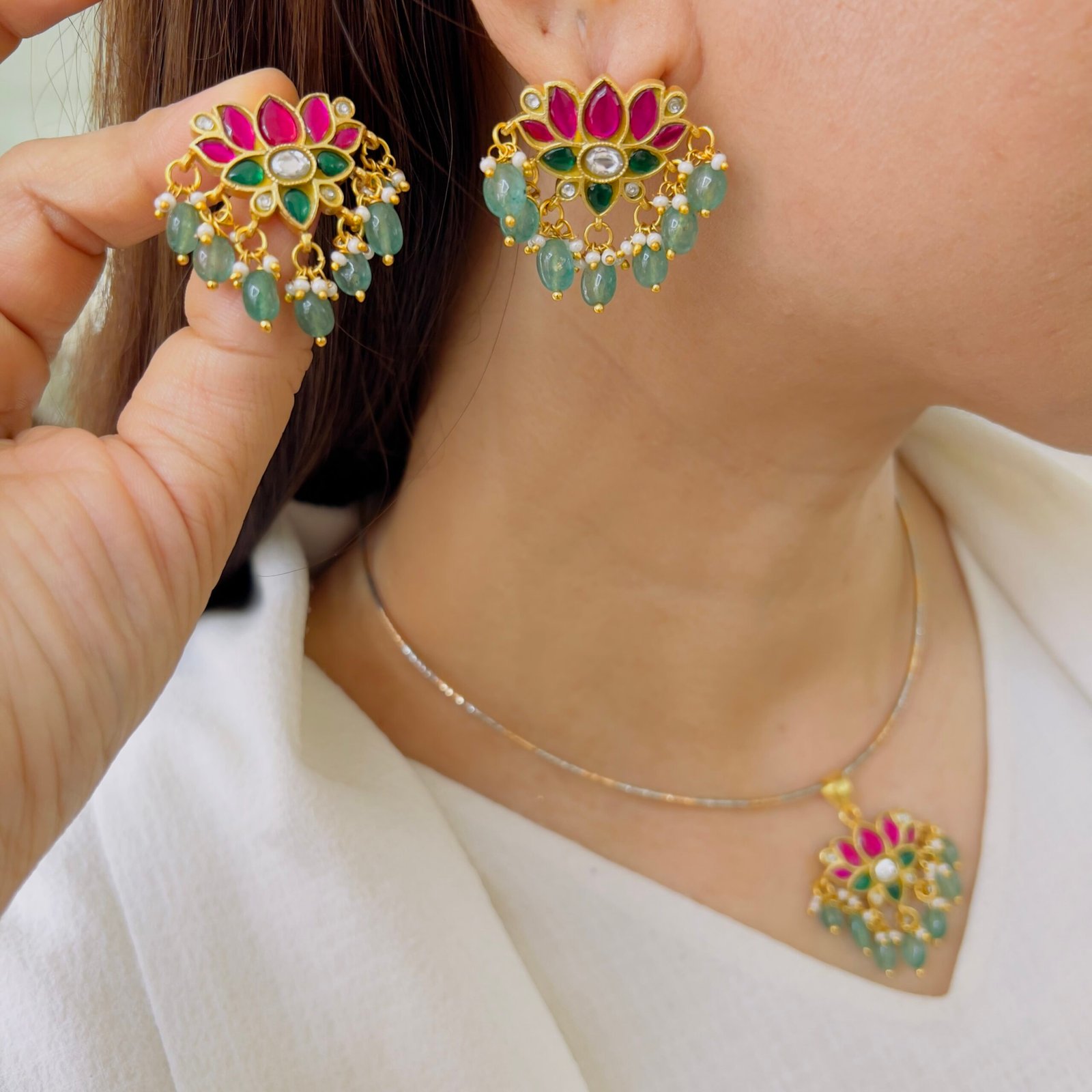 Elegant Jadau Pendant Set – Classic & Graceful