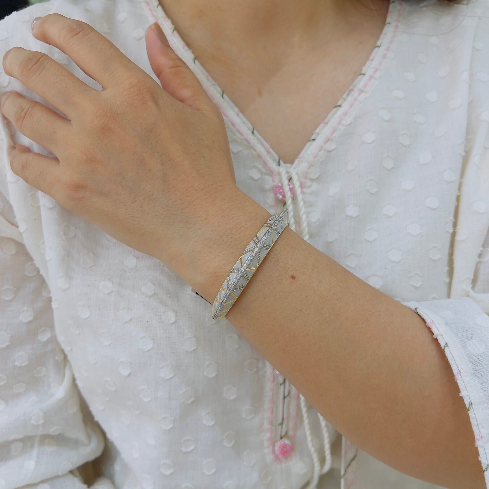 This 18k Gold-Plated kada bracelet with Anti-Tarnish finish and Water Resistance is designed for daily and office wear, Lightweight yet durable, it offers lasting shine and elegance for professional and casual outfits alike.