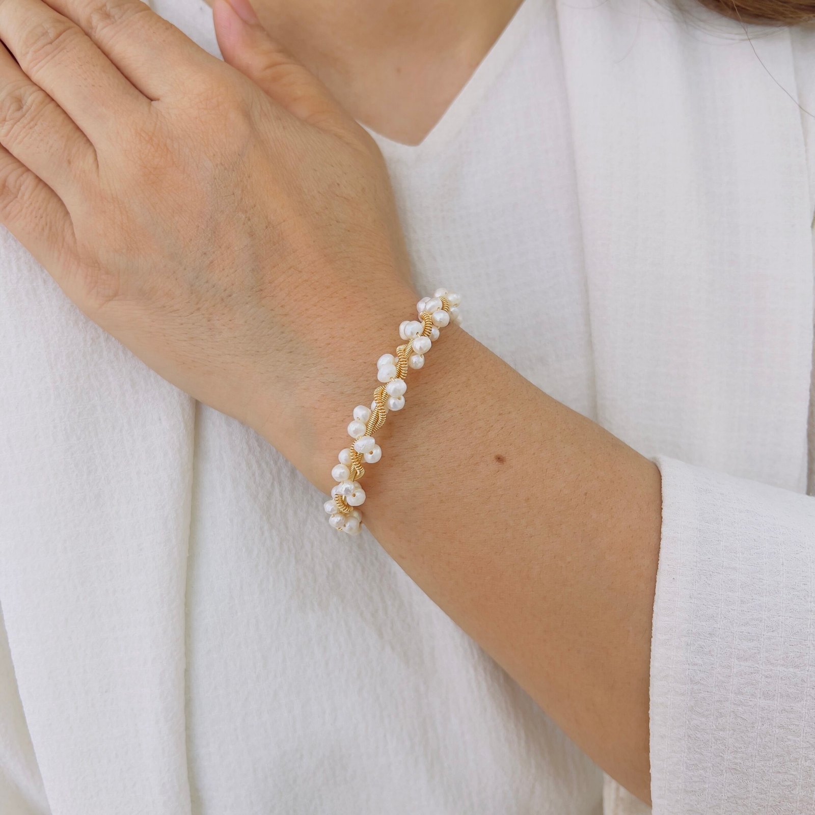 A delicate pearl bracelet designed to add effortless elegance to your everyday and occasion looks, Its classic charm blends beautifully with both traditional and modern outfits, making it a must-have in your collection.