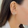 Perfect for your everyday elegance, these 18k gold plated, anti-tarnish earrings with shiny stones are durable for rough use and keep their charm all day long.