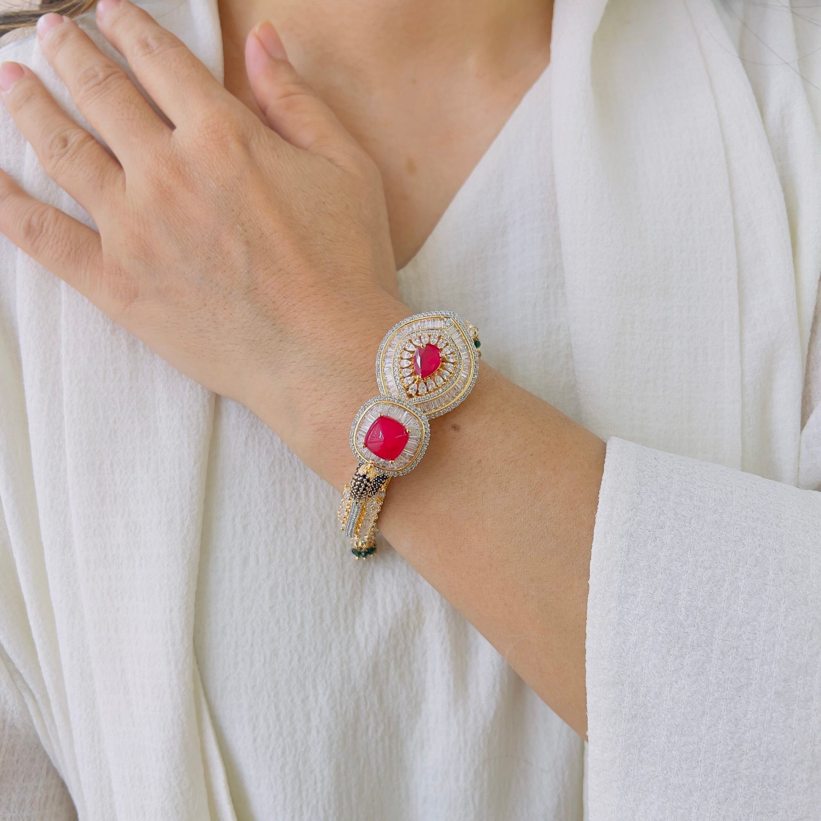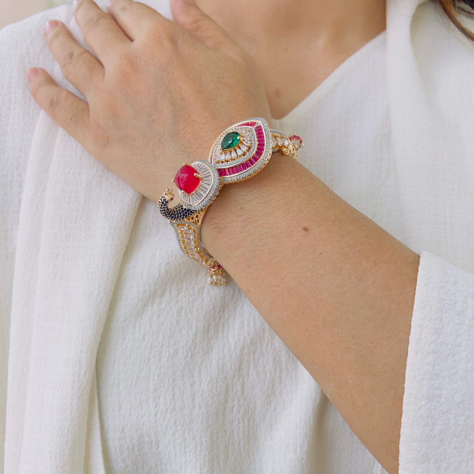 Designed to elevate your everyday and festive looks, this statement bracelet features refined craftsmanship with rich detailing and a graceful finish. Lightweight yet eye-catching, it pairs beautifully with ethnic and contemporary outfits.