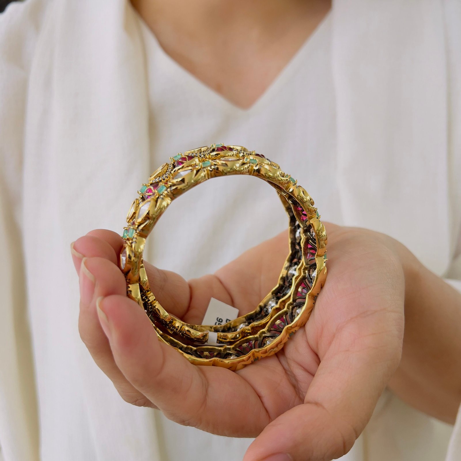 This exquisite Victorian-style bracelet showcases a rich gold-toned finish with intricate detailing and a graceful design, Crafted to elevate your ethnic and festive looks, it sits beautifully on the wrist, making it perfect for weddings, celebrations, and special occasions.