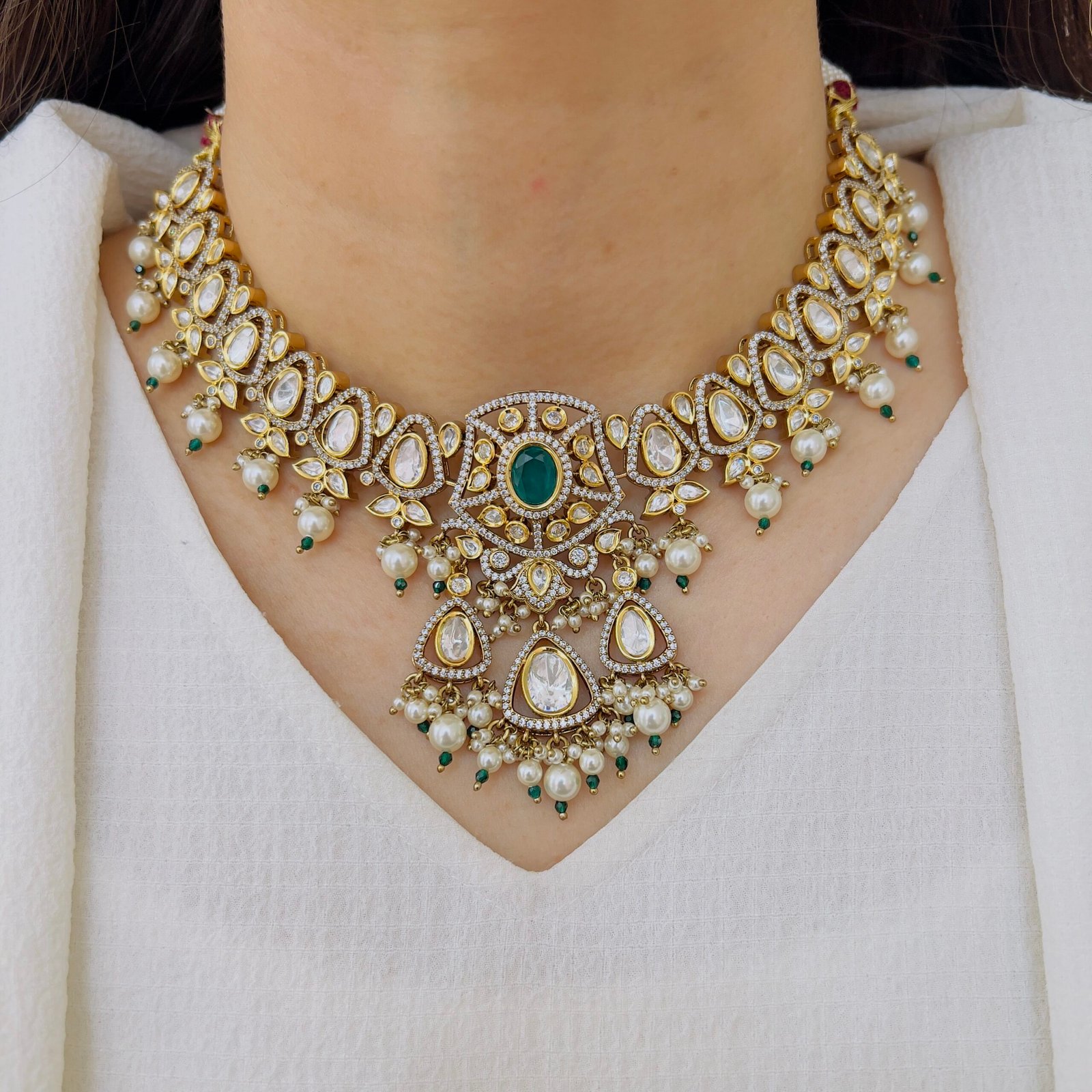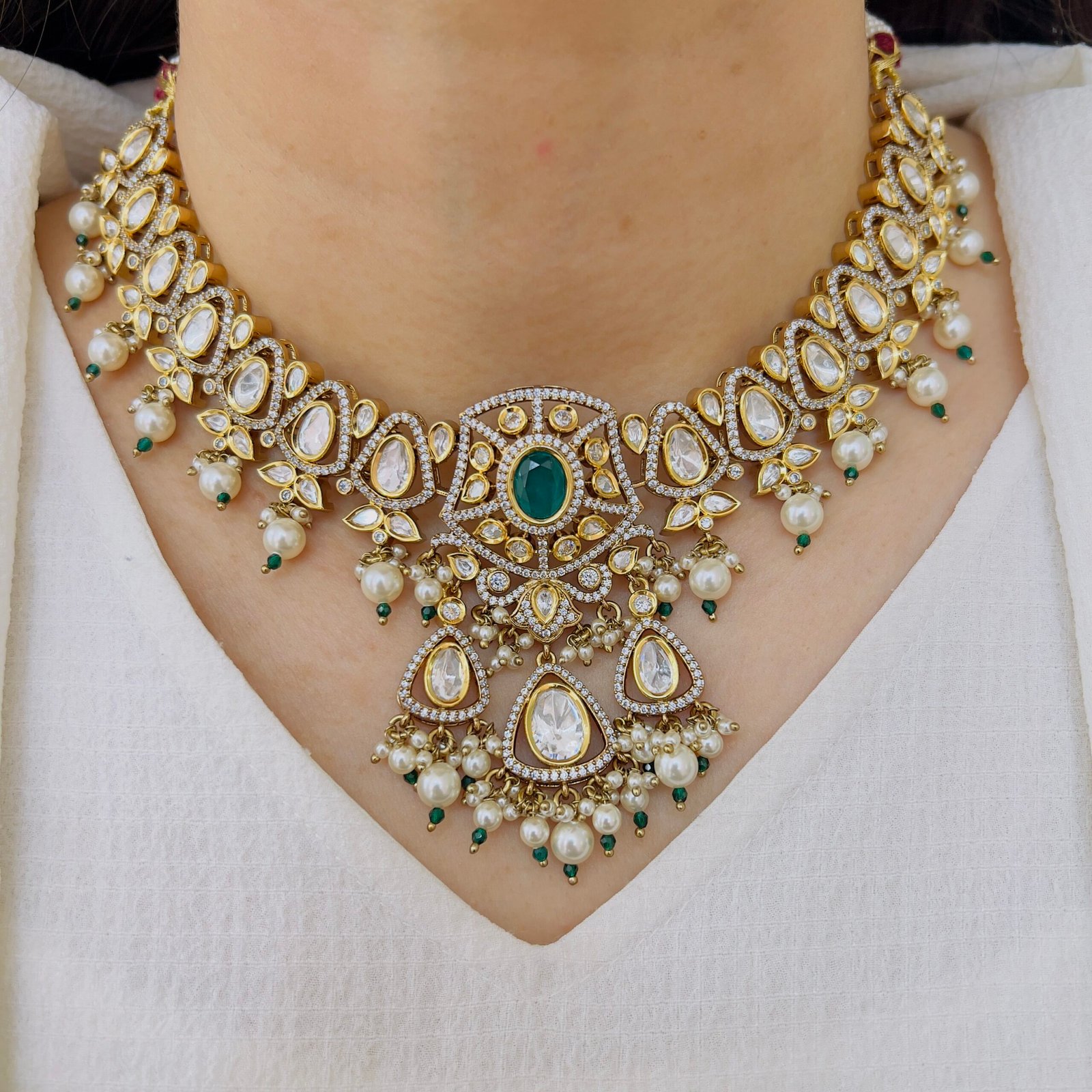 Emerald & Ruby “Temple-Frame” Polki Necklace Set