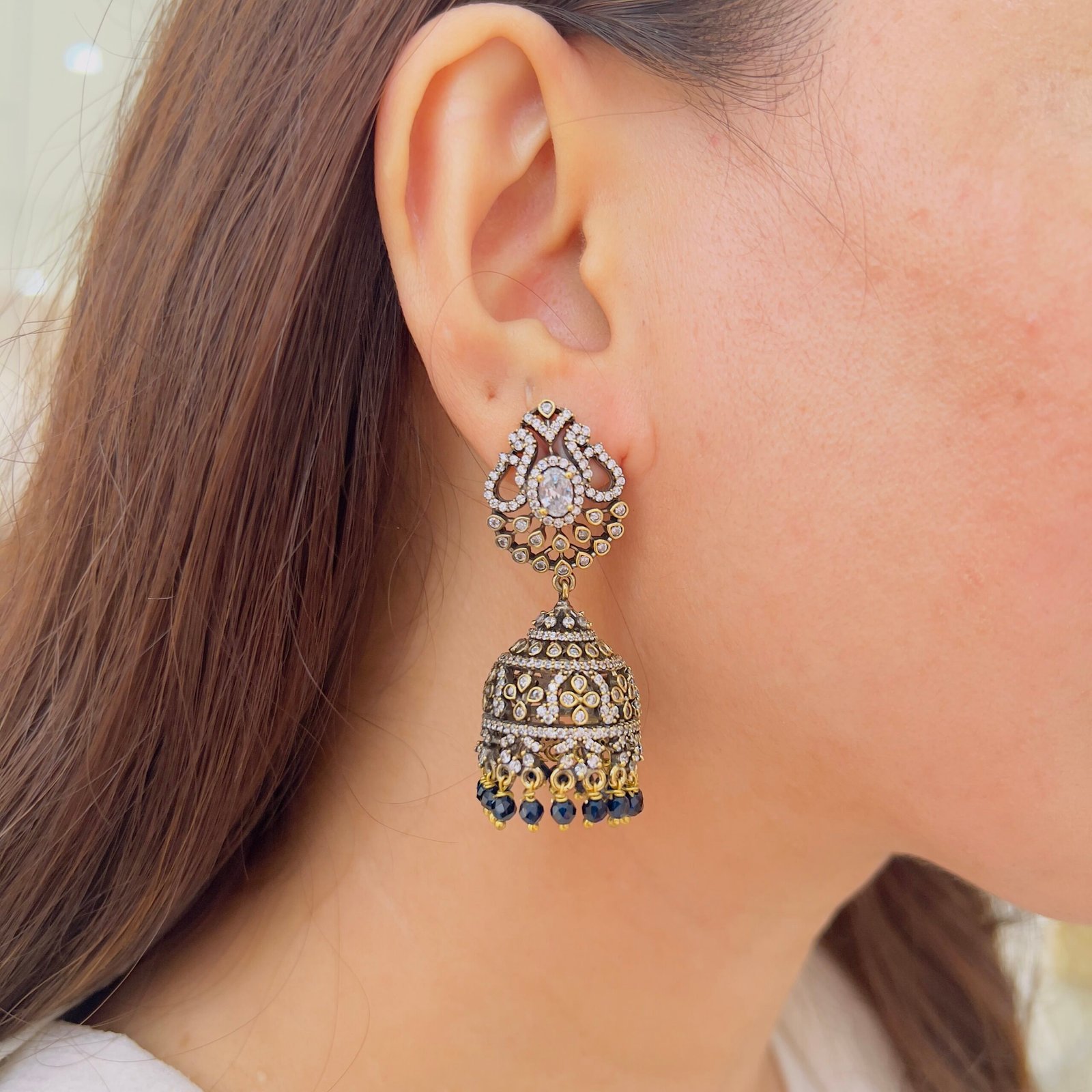 These jhumka earrings bring out the richness of traditional design with a refined finish, Lightweight and stylish, they are perfect for long wear at celebrations and special occasions.