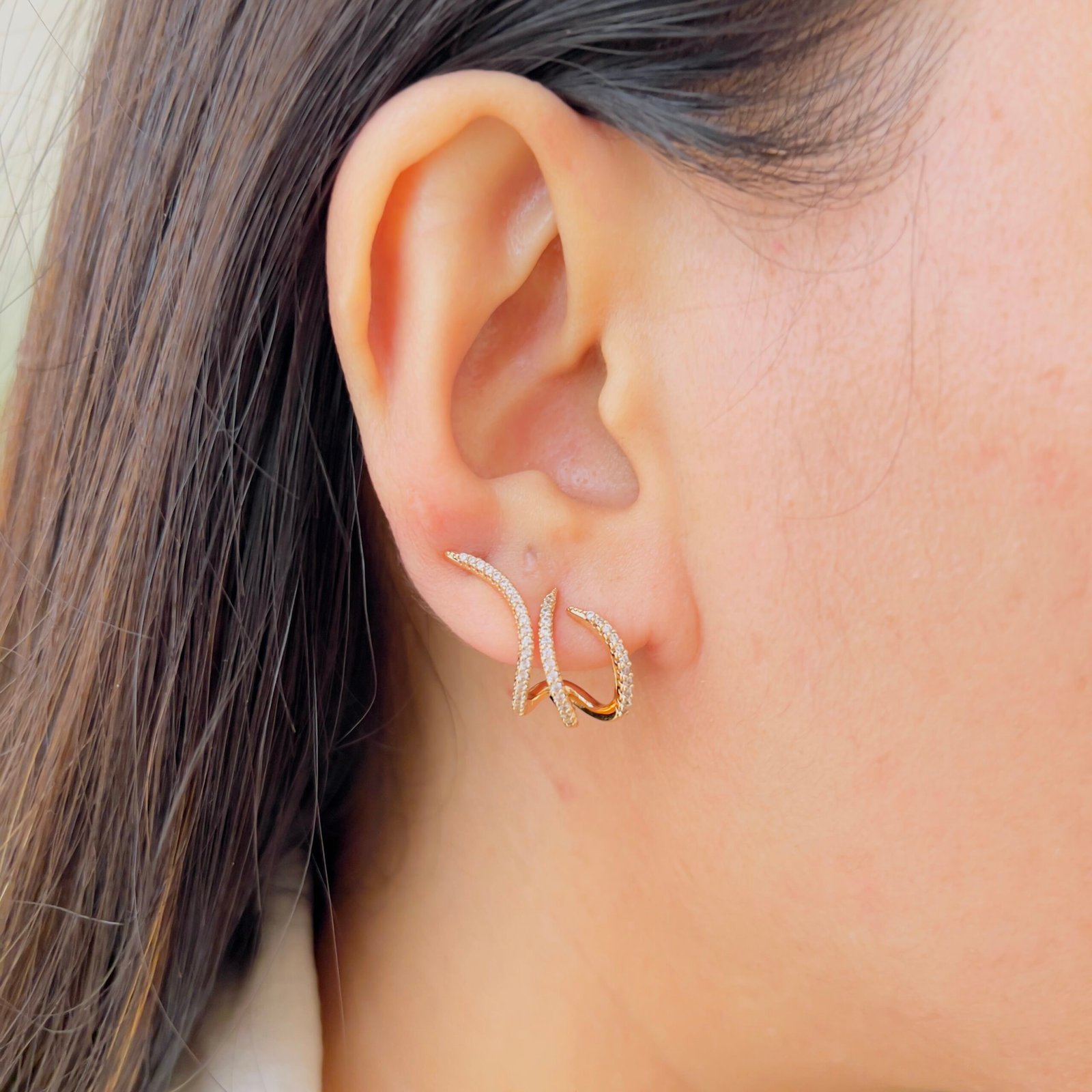 The Fire Earring features a bold, flame-inspired silhouette adorned with sparkling diamond-style stones and finished in a luxurious gold polish. Designed to make a statement, this elegant piece adds fierce charm and modern sophistication to both festive and evening looks.