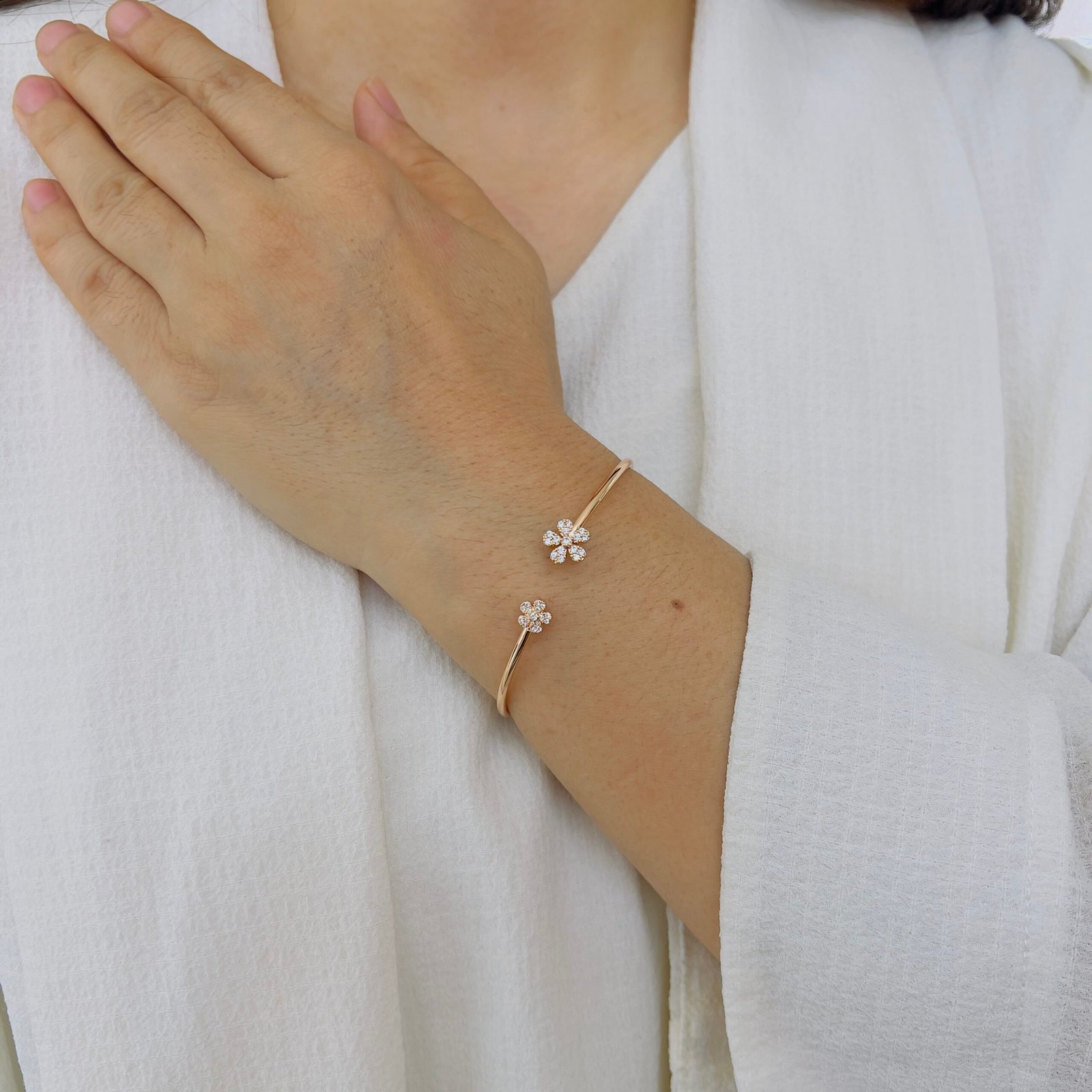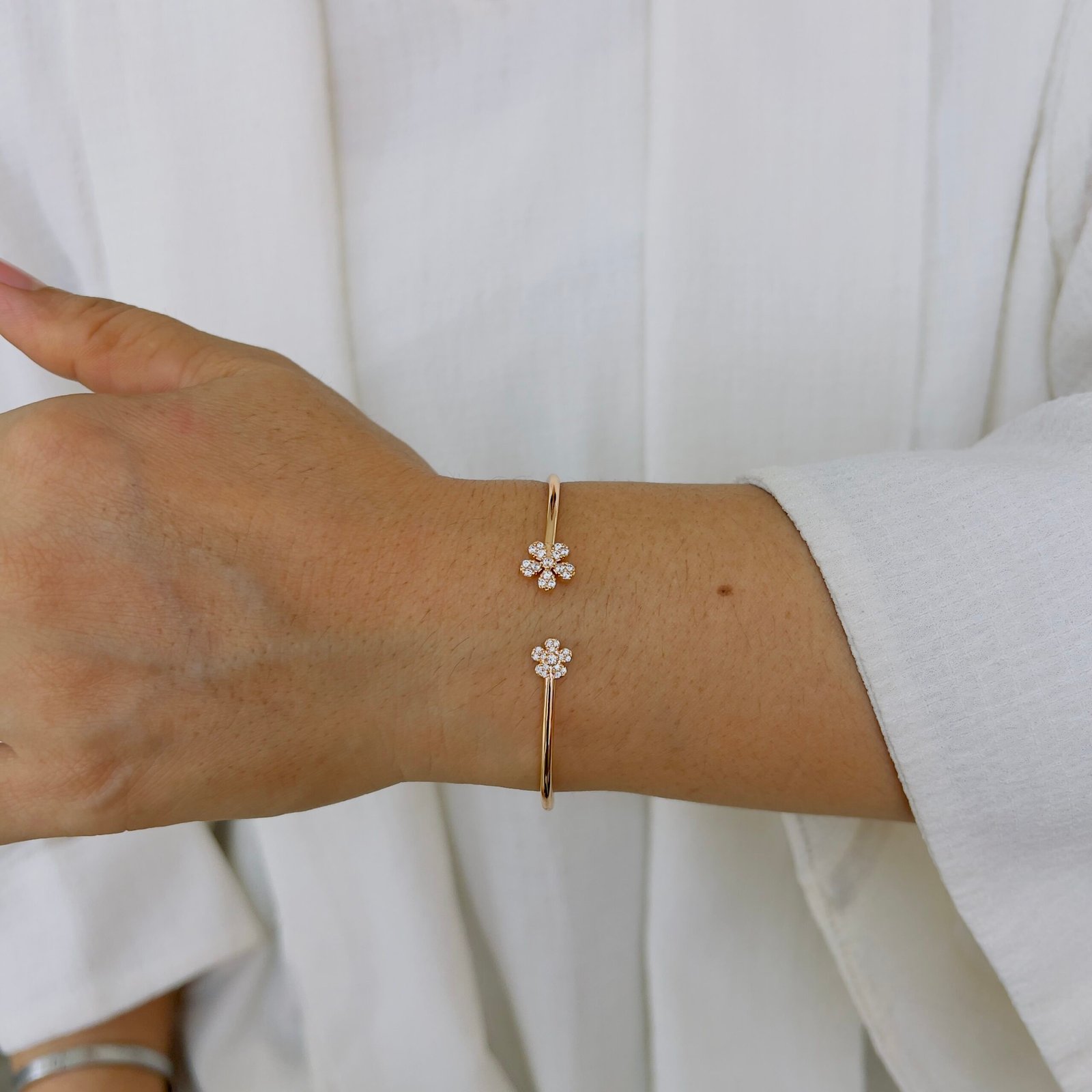 Featuring twin flower motifs with a subtle shimmer, this open-style bracelet brings elegance and lightness to your wrist.