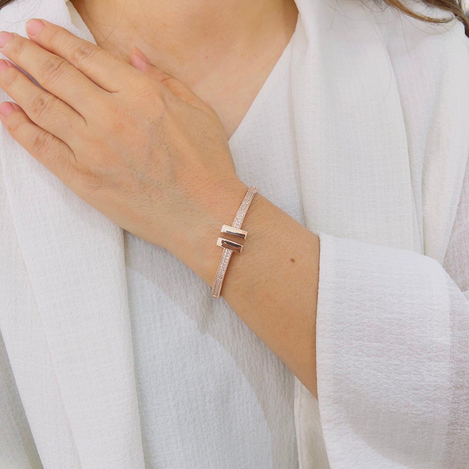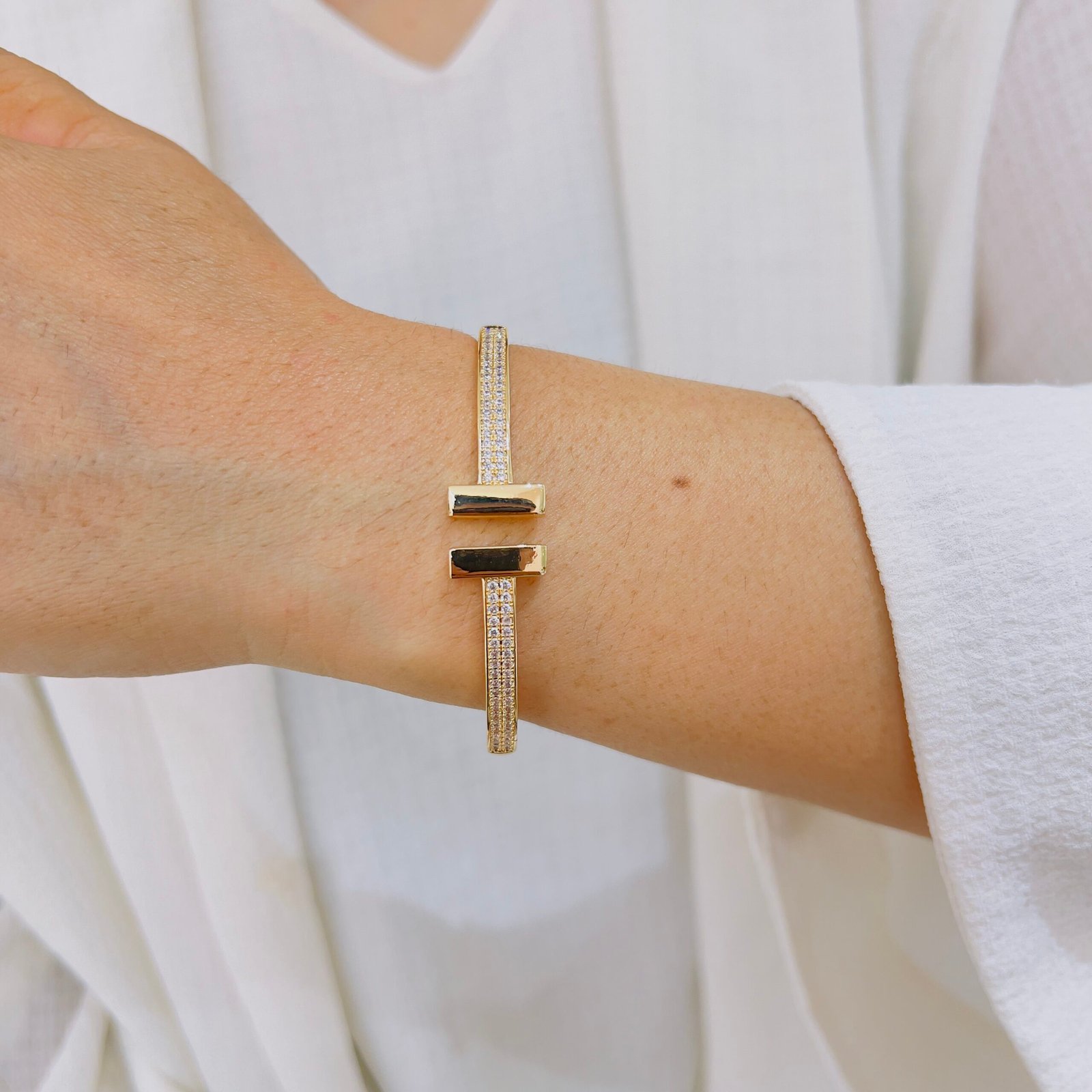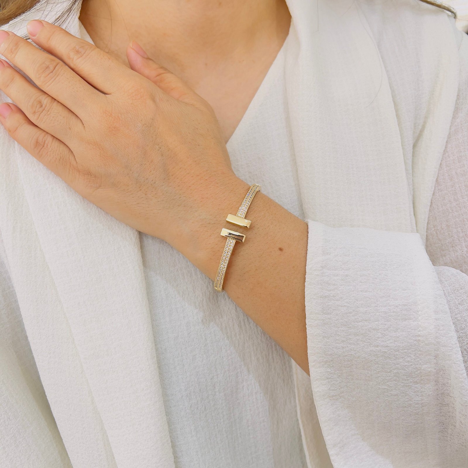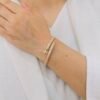 Inspired by fluid wave lines, this open-cuff bracelet is designed for daily office wear, featuring an anti-tarnish finish and durable quality that easily supports rough and regular usage.