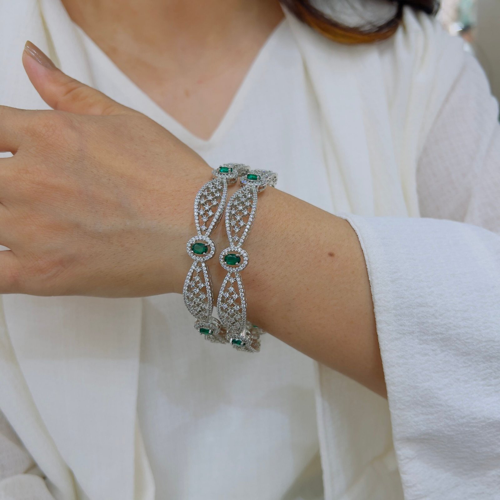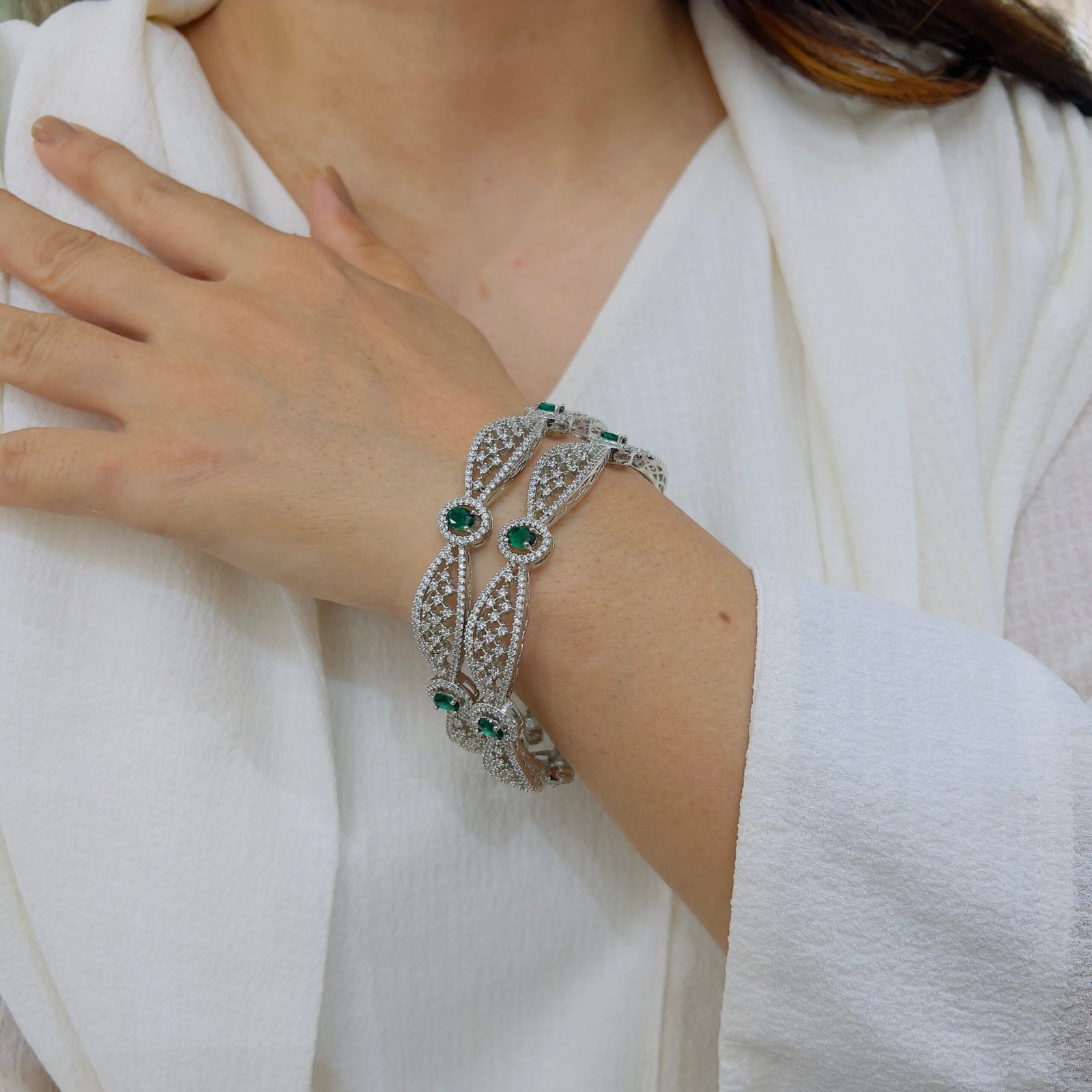 Our anti-tarnish, hand-made diamond bangle shines with 18K silver plating—crafted to wear roughly while maintaining elegance, brilliance, and everyday timeless sophistication.