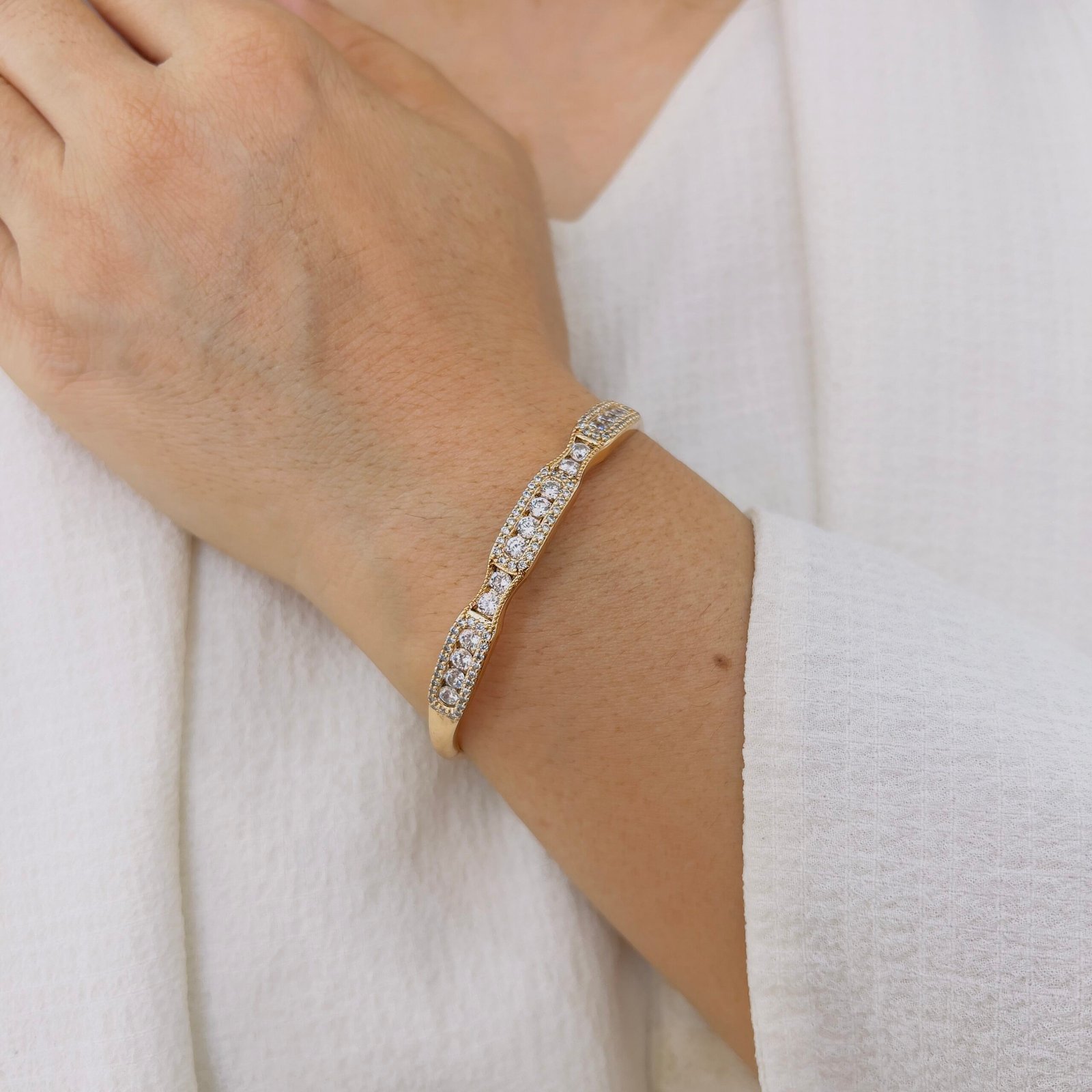 Add a refined golden touch to your everyday outfits with this 18K gold plated bracelet, Perfectly suited for office wear and all-day comfort.