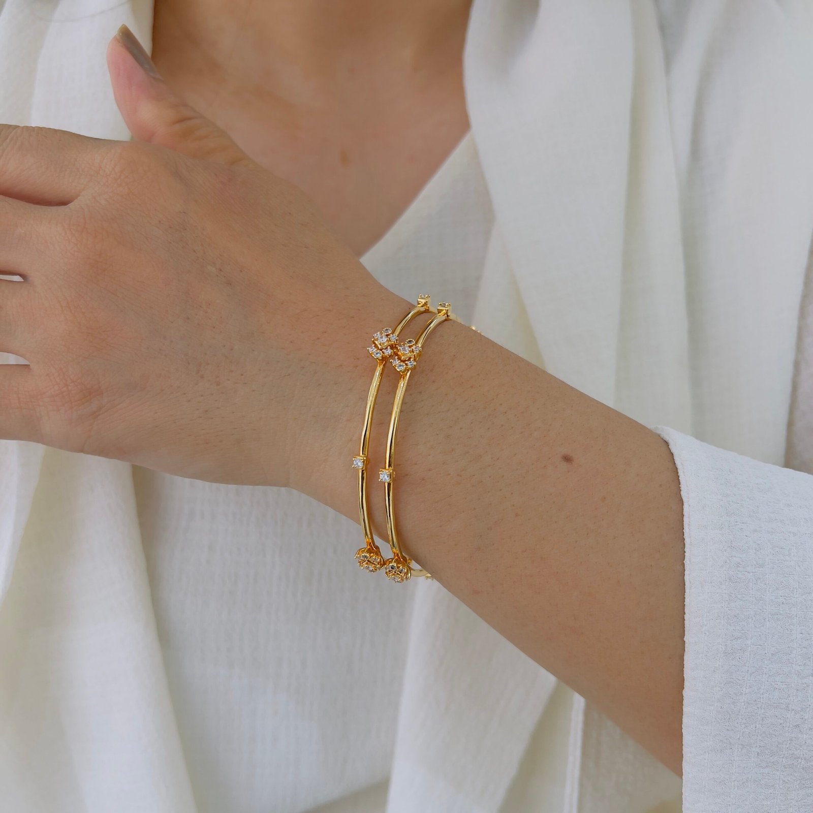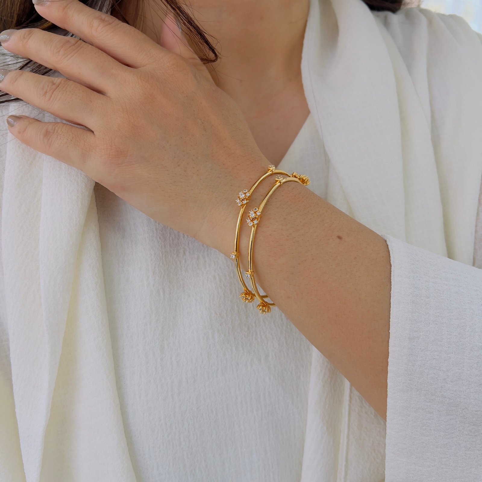 Elevate your charm with 18k Gold-Plated Diamond Bangles, Anti-Tarnish and durable for roughly wear, they deliver everyday sparkle and timeless elegance effortlessly.