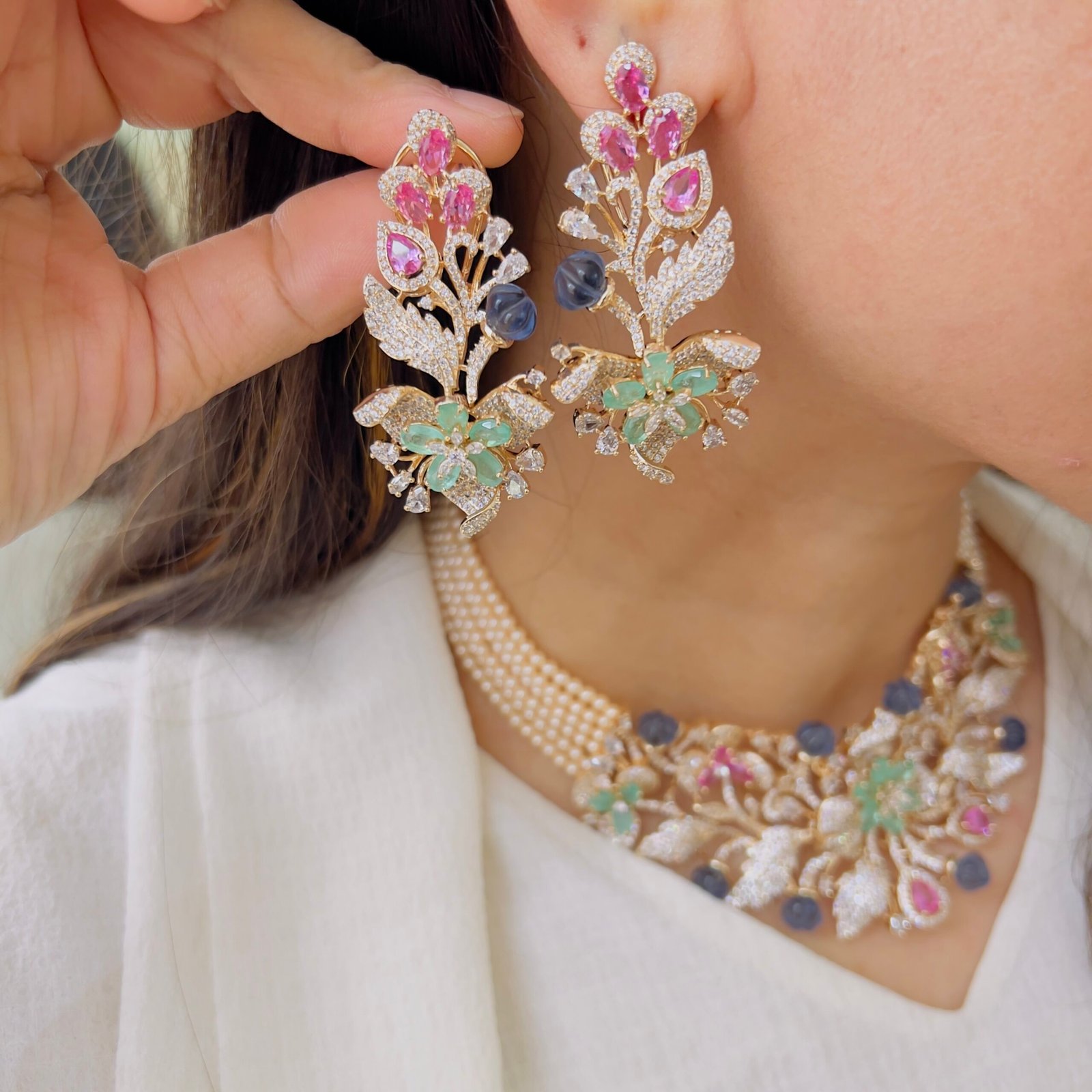 Grand Pastel Floral Statement Jewellery Set