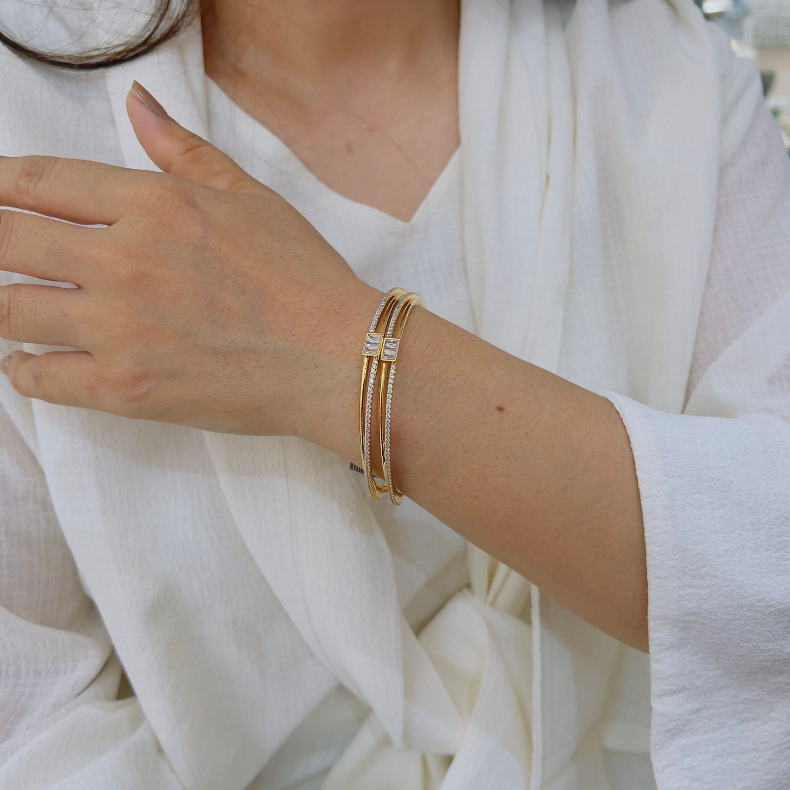 Handcrafted Luxury Gold-Plated Bangle with Sparkling American Diamonds for Timeless Style