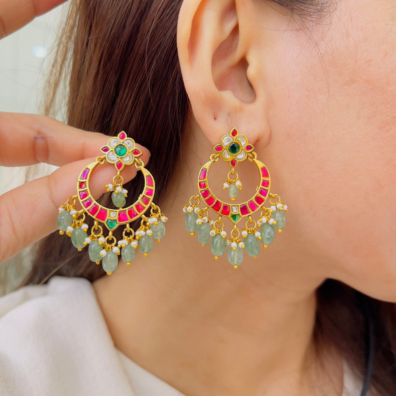 Inspired by royal craftsmanship, these Jadau earrings reflect elegance and tradition, Perfect for weddings, celebrations, and occasions where you want to stand out gracefully.