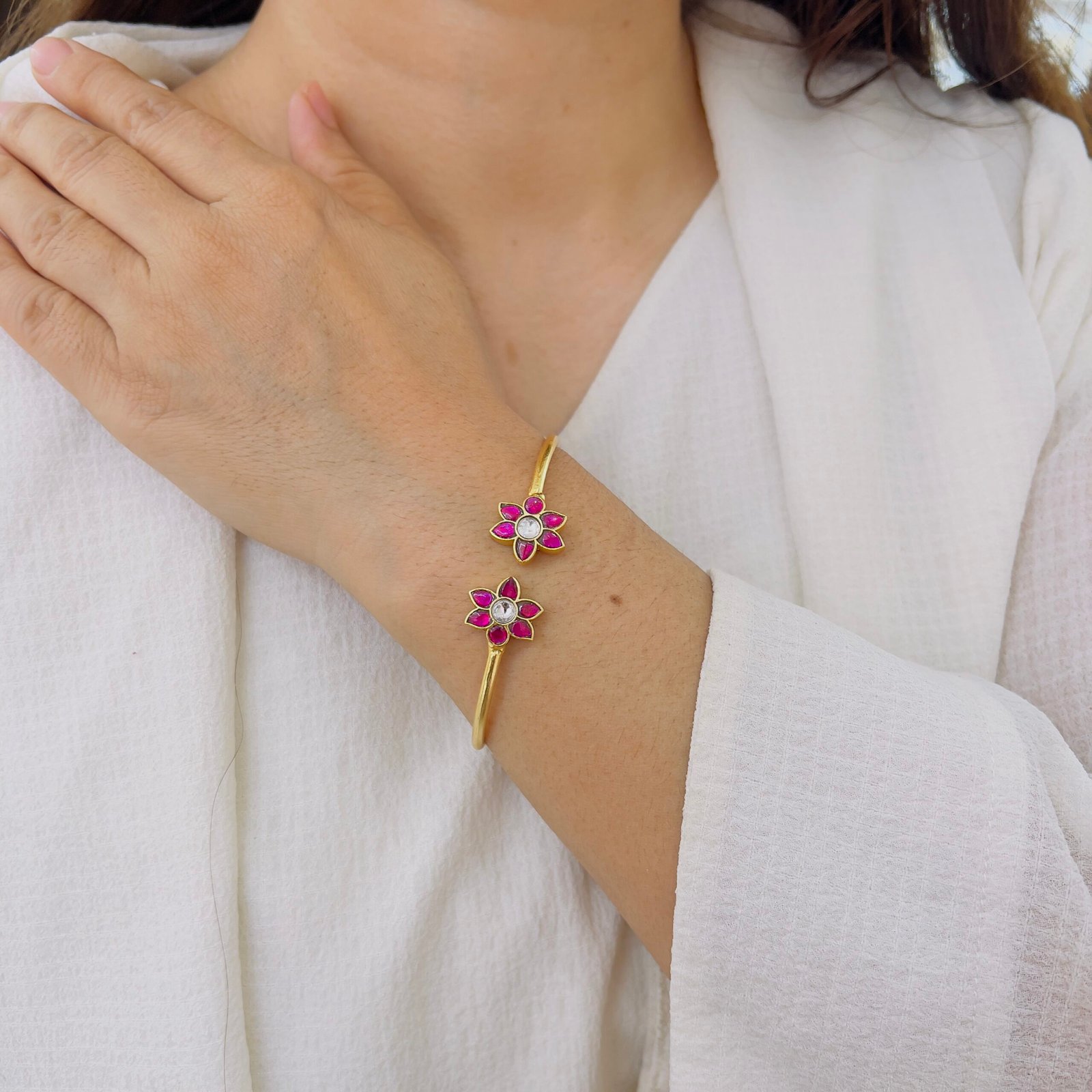 Inspired by royal heritage jewellery, this Jadau bracelet showcases beautiful craftsmanship and timeless design. Ideal for festive celebrations and weddings, adding sophistication and charm to your look.