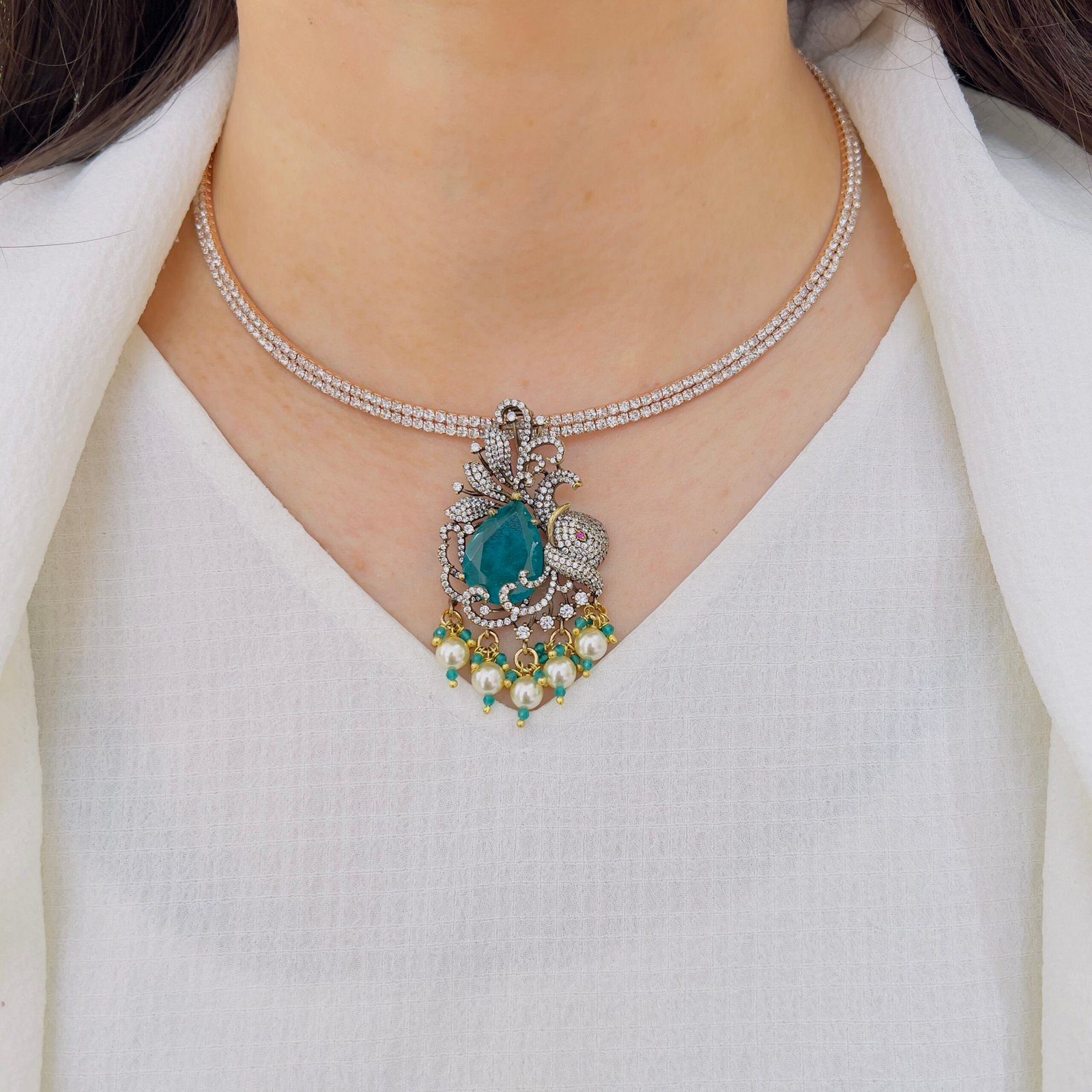 Inspired by vintage royal jewellery, this Victorian pendant set highlights delicate detailing and elegant teardrop accents, Perfect for festive and bridal looks, it enhances your style with classic grandeur and refined beauty.