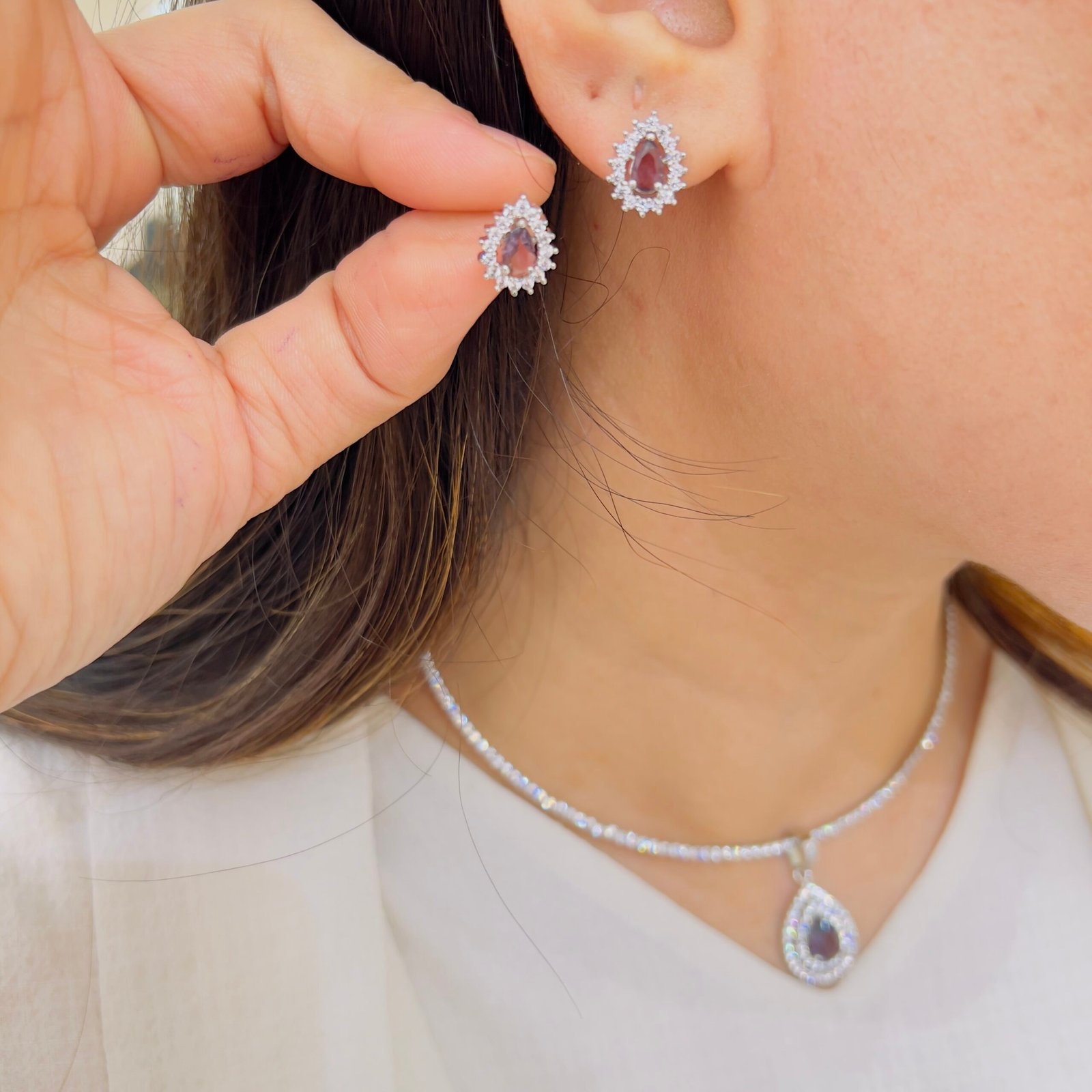 Crafted to reflect royal sophistication, this diamond pendant set showcases detailed artistry and refined shimmer, adding a distinguished touch of luxury to both celebratory ensembles and refined daily wear.